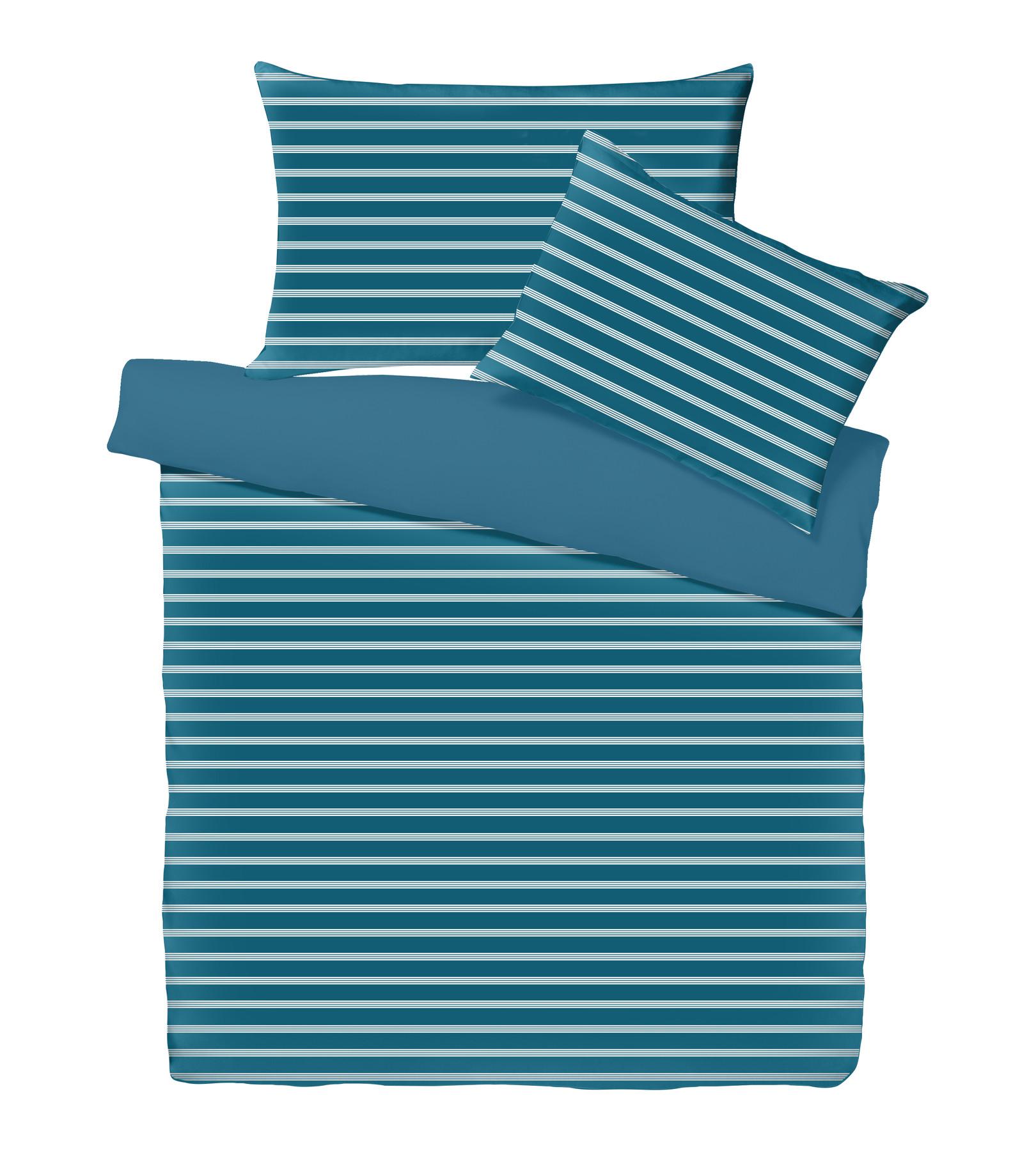 Dieser Duvetbezug präsentiert sich im Melange-Jersey-Double-Face-Design und bietet Vielseitigkeit und Komfort. Eine Seite zeigt ein klassisches Streifenmuster, während die Rückseite einfarbig ist, was verschiedene Styling-Optionen ermöglicht.