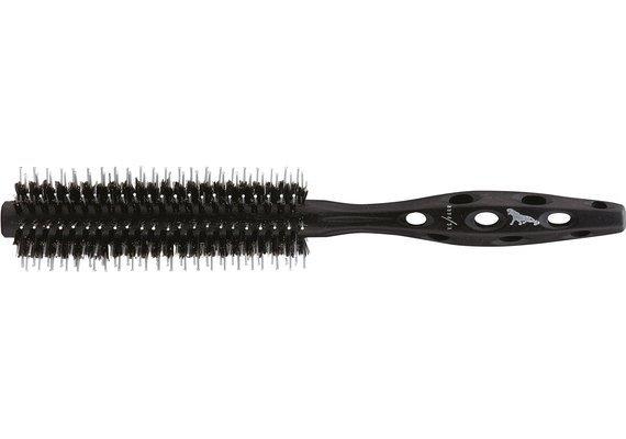 Rundbürste, perfekt zum Glätten der Haare und für Glanz durch die Kombination aus Wildschwein- und Nylon-Borsten in gleichen Reihen. ? Wildschweinborsten (sehr dicht gesetzt) für Fülle, Volumen und Glanz ? Nylonborsten für extrem starken und gleichmäßigen Zug des Haares ? Langer Bürstenkopf (nimmt große Haarpartien auf = schnelles Arbeiten) ? Dicht gesetzte Nylonborsten sorgen für extremen Grip und starken Zug im Haar, somit perfekt zum Glätten des Haares ? Geringe Trockenzeit ? Superleichter Buchenholzgriff mit ?Antischweiß?- Luftlöchern für perfektes Handling und optimale Kontrolle ? Besonders leicht drehbar aufgrund hexagonaler (leicht eckiger) Form ? Echtholz-Griff mit antistatischer Carbon-Lackierung