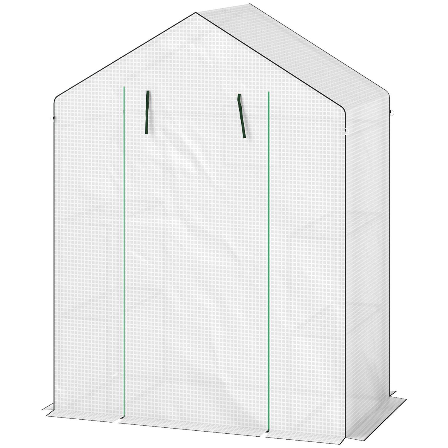 Northio Gewächshaus mit Rolltür, Fenster, Regale, winterfest Foliengewächshaus aus Stahl, Treibhaus für Balkon, Garten, Tomatenhaus 143 x 74 x 190 cm, Tomatengewächshaus für Tomaten, Gemüse, Weiß Aosom