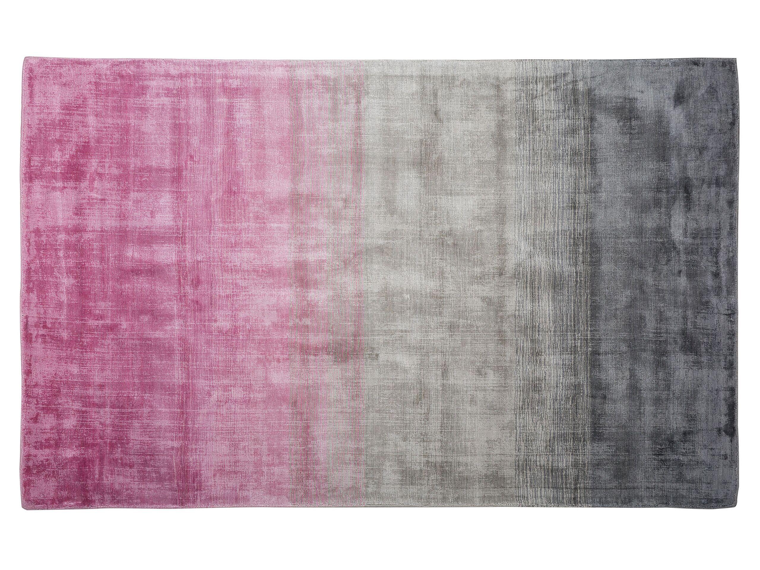 Edler Teppich aus Viskose mit Farbverlauf in Grau-Rosa. Dieser aussergewöhnliche Teppich ist vollständig handgewebt. Dank seiner robusten Verarbeitung aus feiner Viskose entsteht sowohl eine leicht schimmernde als auch sehr angenehme Oberfläche. Die Verbindung von Rosa und Grau lässt eine luxuriöse Atmosphäre in ihren vier Wänden aufkommen. Er bildet ganz und gar eine schmückende Besonderheit für jeden Fussboden.