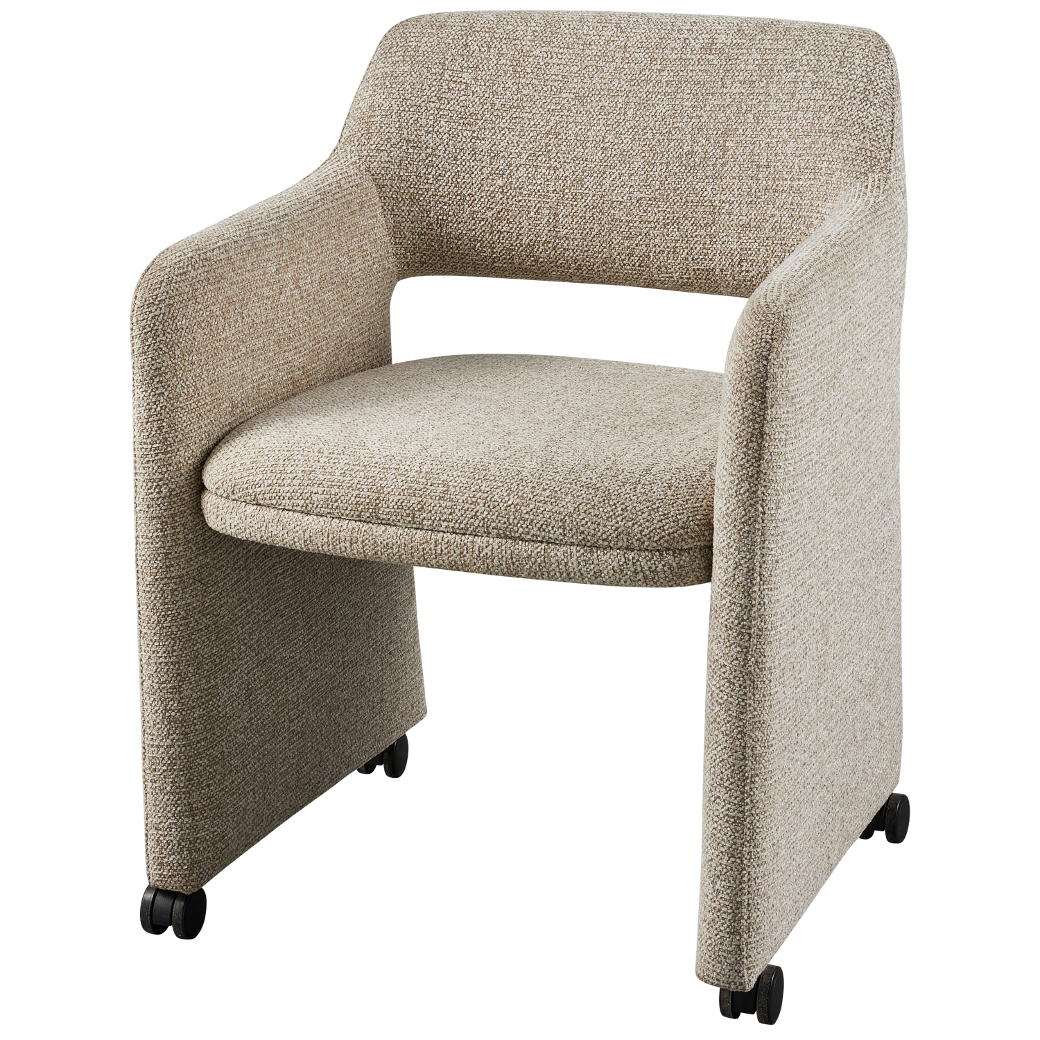 Moderner Esszimmerstuhl auf Rollen mit festem Sitz Gepolstert mit Boucle-Mischgewebe Ceyo (100% PES) Von Kopf bis Fuss gepolstert 79 cm x 59 cm x 58 cm