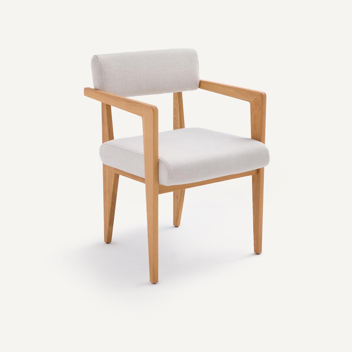 Der vom Möbeldesign der 50er-Jahre inspirierte Esszimmerstuhl Izag verbindet ein Gestell aus massivem Eichenholz und einen Bezug mit Baumwolle und Leinen. Ein ästhetischer und bequemer Esszimmerstuhl mit der Handschrift von AM.PM. Hergestellt in Europa.
