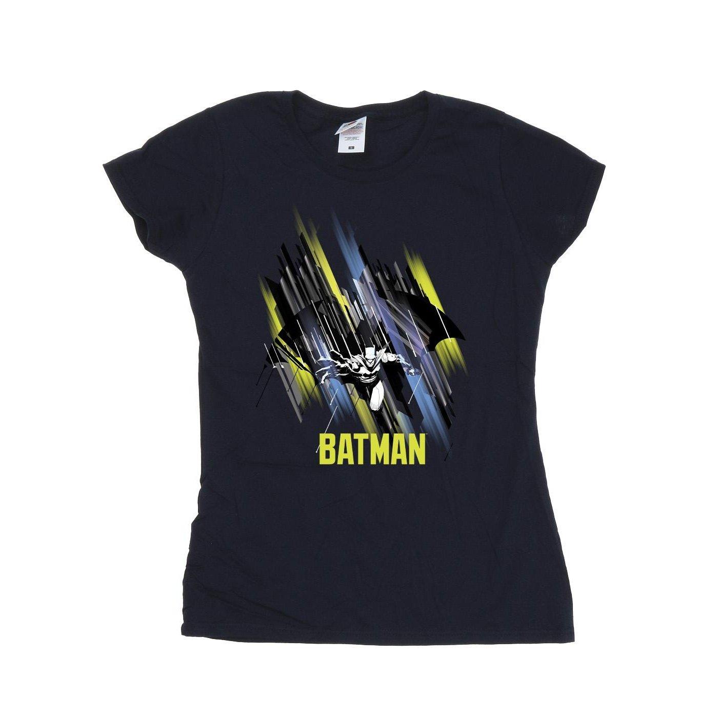 Dieses T-Shirt zeigt einen dynamischen Grafikdruck von Batman und ist eine stilvolle Wahl für Fans. Das Design fängt den ikonischen Superhelden in Aktion ein, vor einem Hintergrund aus abstrakten Linien und Farben.