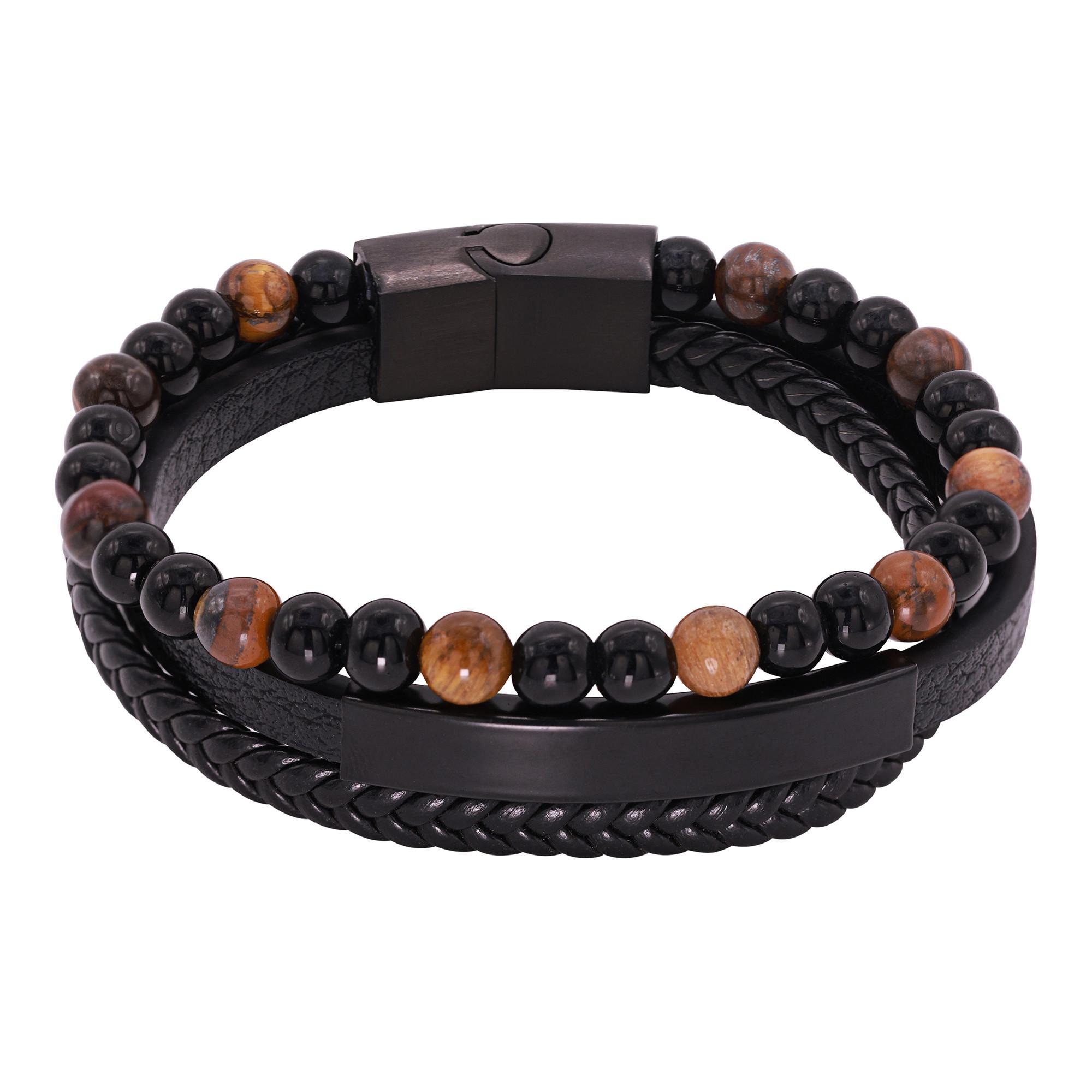 3-faches Männer Lederarmband mit Tigerauge-Steinen