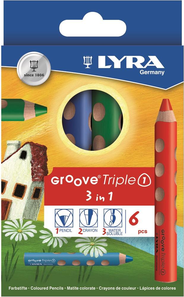 Lyra Farbstifte Groove Triple 1 6er Kartonetui. Menge pro Packung: 6 Stück(e), Schreibfarben: Mehrfarbig, Leitungsdurchmesser: 1 cm. Länge (mm): 12 cm, Durchmesser (mm): 1,5 cm.