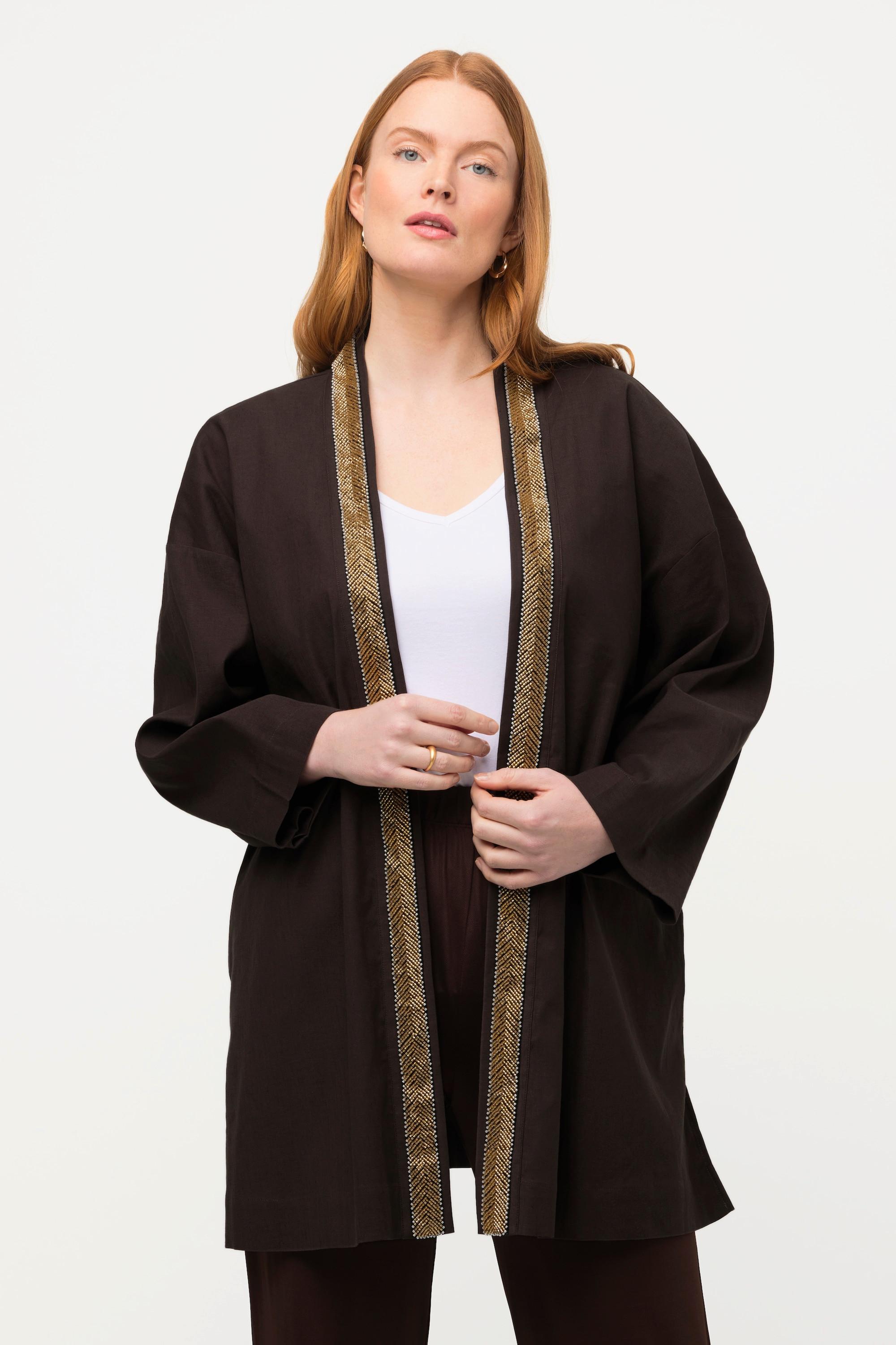 Ulla Popken Kimono-Jacke Schalkragen Leinenmix Perlenborte