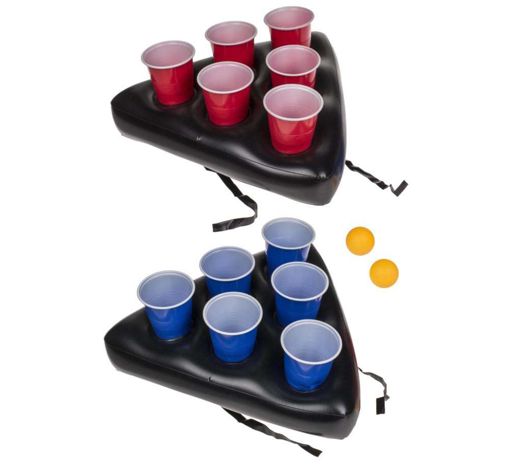 Packungsgrösse: 1 Stück, Produkttyp: Aufblasbares Accessoire, Material: Kunststoff, Detailfarbe: Rot, Blau, Schwarz, Motto: UniversalBeer-Pong Party-SetEnthält 2 Bälle und 12 Becher (6 Blaue und 6 Rote)1 aufblasbarer Hut mit Platz für Becher