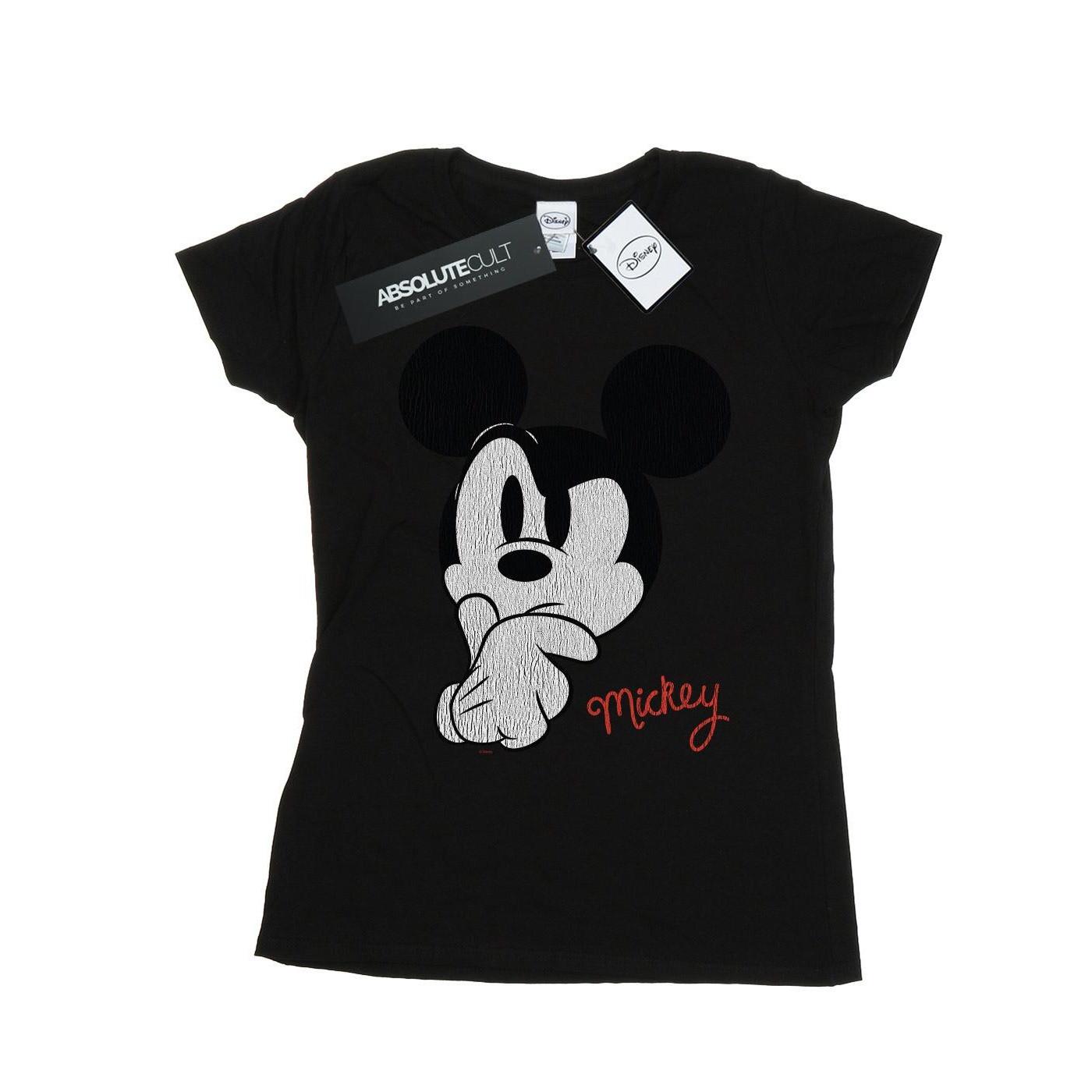 Dieses T-Shirt verfügt über einen klassischen Rundhalsausschnitt und kurze Ärmel und bietet eine bequeme und vielseitige Passform. Das Design zeigt Mickey Mouse in einer nachdenklichen Pose und verleiht jedem Freizeitoutfit eine verspielte Note.