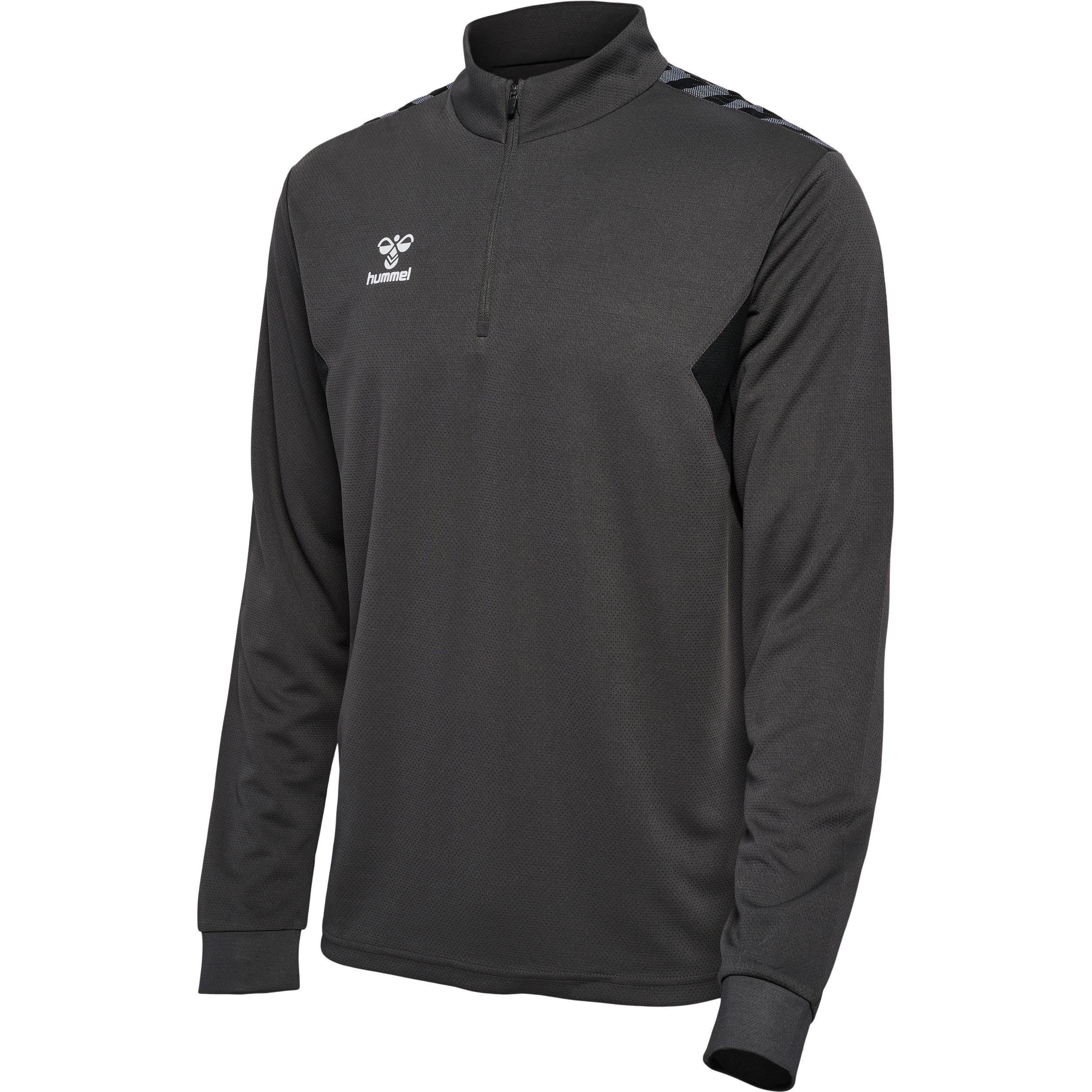 Gestrickter Stoff aus Jacquard. Aufgedrucktes Logo. Chevron-Streifen an den Schultern. Zweiteilige Garage mit Reißverschluss.