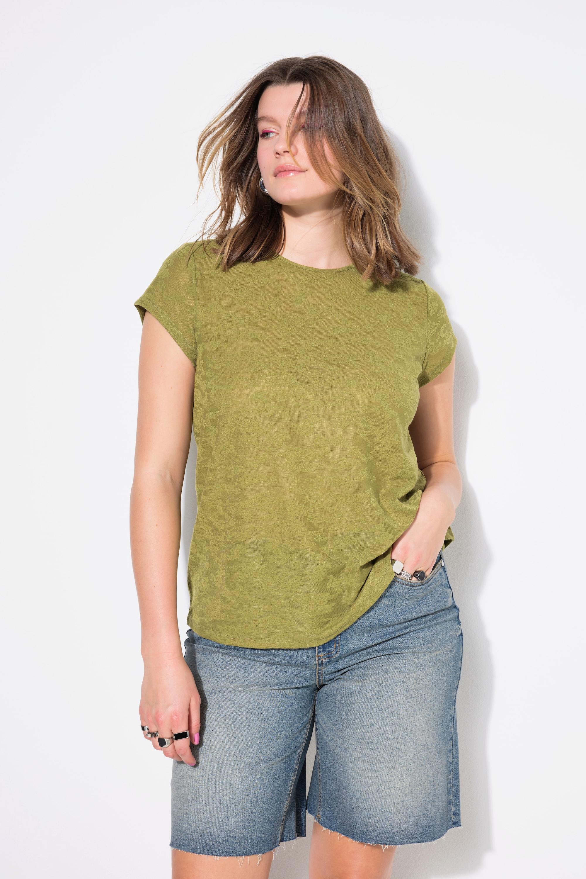 Dieses T-Shirt präsentiert sich in einer klassischen Form und ist aus Jacquard-Jersey mit einem dezenten Muster gefertigt. Es bietet eine bequeme Passform und eine stilvolle Textur, die es zu einer vielseitigen Ergänzung für jede Garderobe macht.