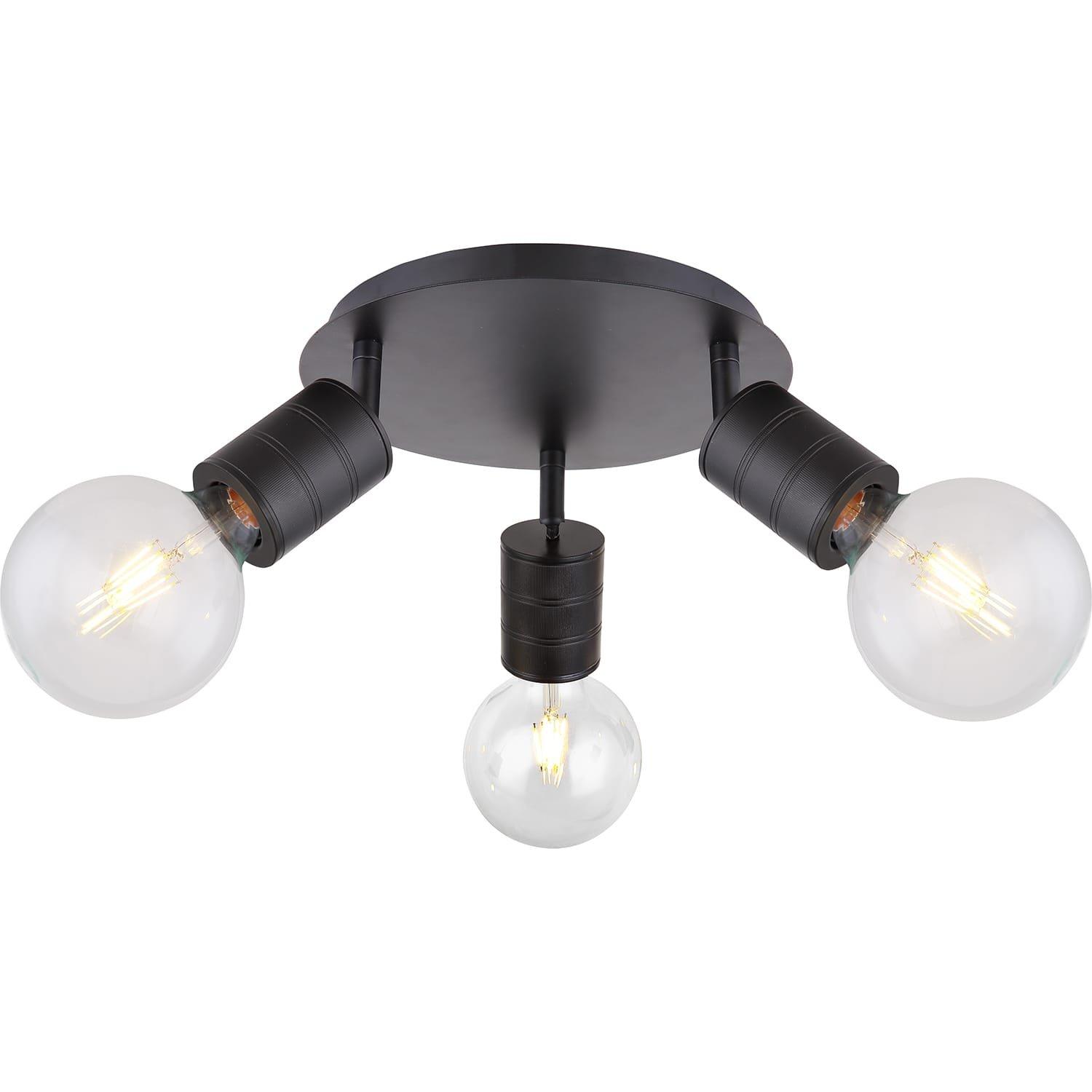 Die schwarze 3-strahlige Deckenstrahler Hermine, katapultiert den angesagten Loftstyle in ihre Wohnung. Simpel und doch voller interessanter Details, mit gerillter Fassungsabdeckung. Durch die freie Wahl des Leuchtmittels (E27 /max. 60W) können Sie selbst über Lichtstärke und Lichtfarbe entscheiden. Ob warm- oder kaltweiss es bleiben keine Wünsche offen. Die Strahler selbst sind beweglich und können nach Bedarf eingestellt werden.