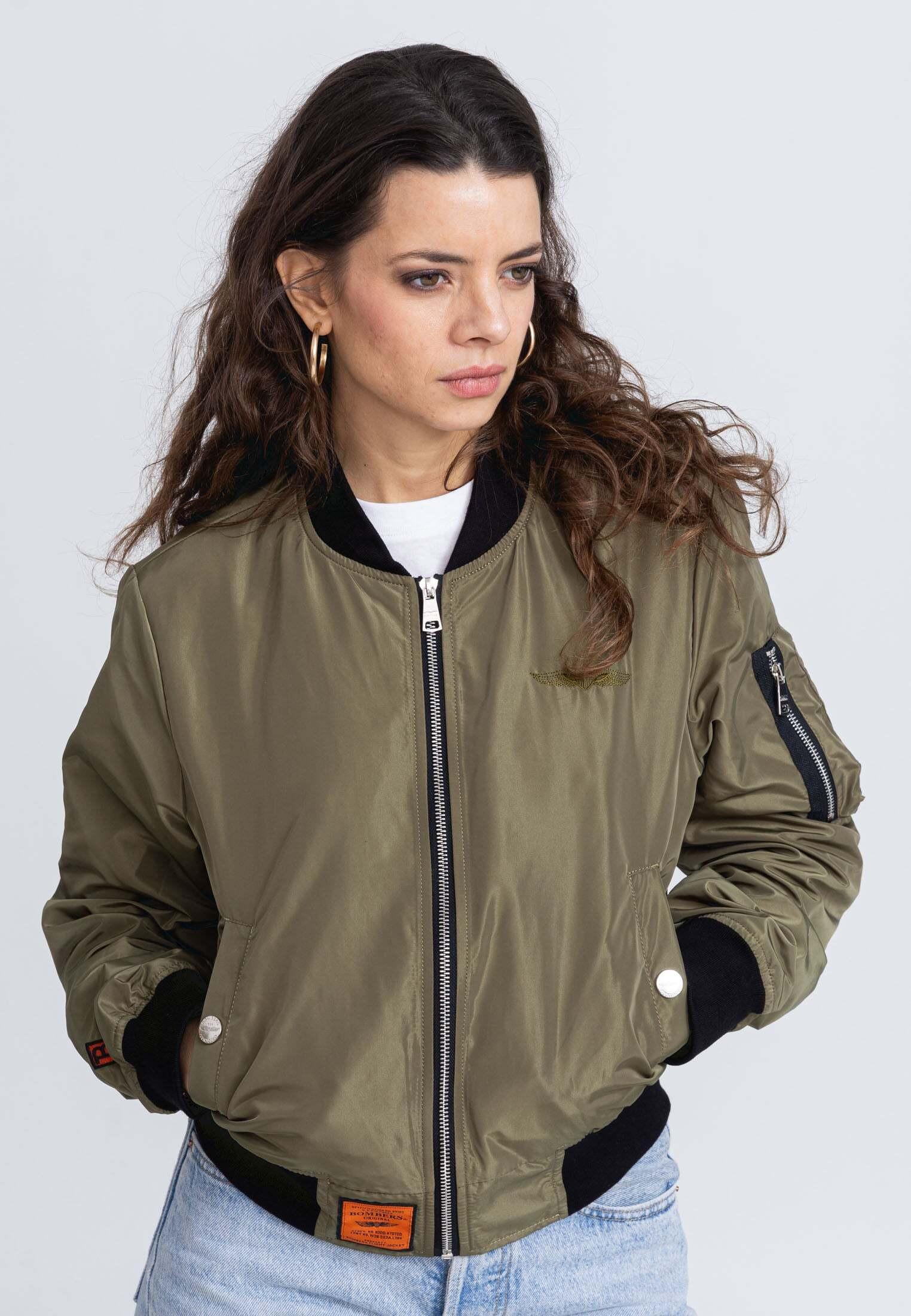 Diese Bomberjacke bietet eine klassische Silhouette mit modernen Details. Sie verfügt über einen durchgehenden Reissverschluss und gerippte Bündchen sowie Saum für eine bequeme Passform. Die Jacke ist mit praktischen Taschen ausgestattet, einschliesslich einer Reissverschlusstasche am Ärmel, die sowohl Stil als auch Funktionalität verleiht.