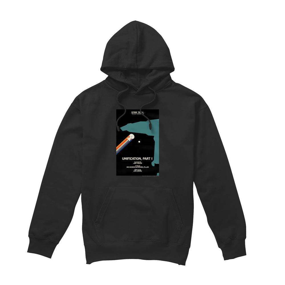 Dieser Kapuzenpullover zeigt einen Grafikdruck, inspiriert von "Unification, Part I" aus Star Trek: The Next Generation Staffel 5 Episode 7. Er ist für Komfort und Stil konzipiert und eine vielseitige Ergänzung für jede Garderobe.