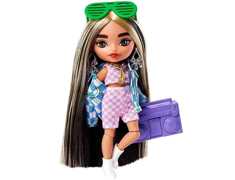 Die Mini-Puppe überzeugt mit einem karierten 2-teiligen Outfit und einer übergrossen Jacke. Mit ca. 14 cm Grösse ist sie beweglich an Ellbogen und Knien, was das Posen erleichtert. Dazu kommen besondere Accessoires wie eine Boombox, Sonnenbrille und Ohrringe, die ihrem stylischen Look den letzten Schliff verleihen. Ein Puppenständer sorgt für stabilen Halt im Laden oder Schlafzimmer.