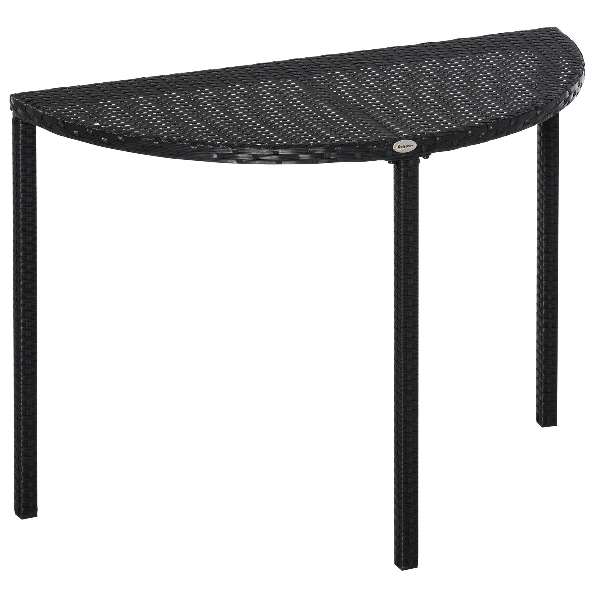 Dieser Balkontisch aus Polyrattan von Outsunny besitzt eine hohe Witterungsbeständigkeit und ist ideal für den Außenbereich wie Balkon, Garten oder Terrasse geeignet. Die Stützbeine sind aus solidem Metall, sodass der Tisch auch mit drei Beinen äußerst stabil und tragfähig ist. Dank der kompakten Maße kann der Tisch flexibel eingesetzt und leicht bewegt werden.