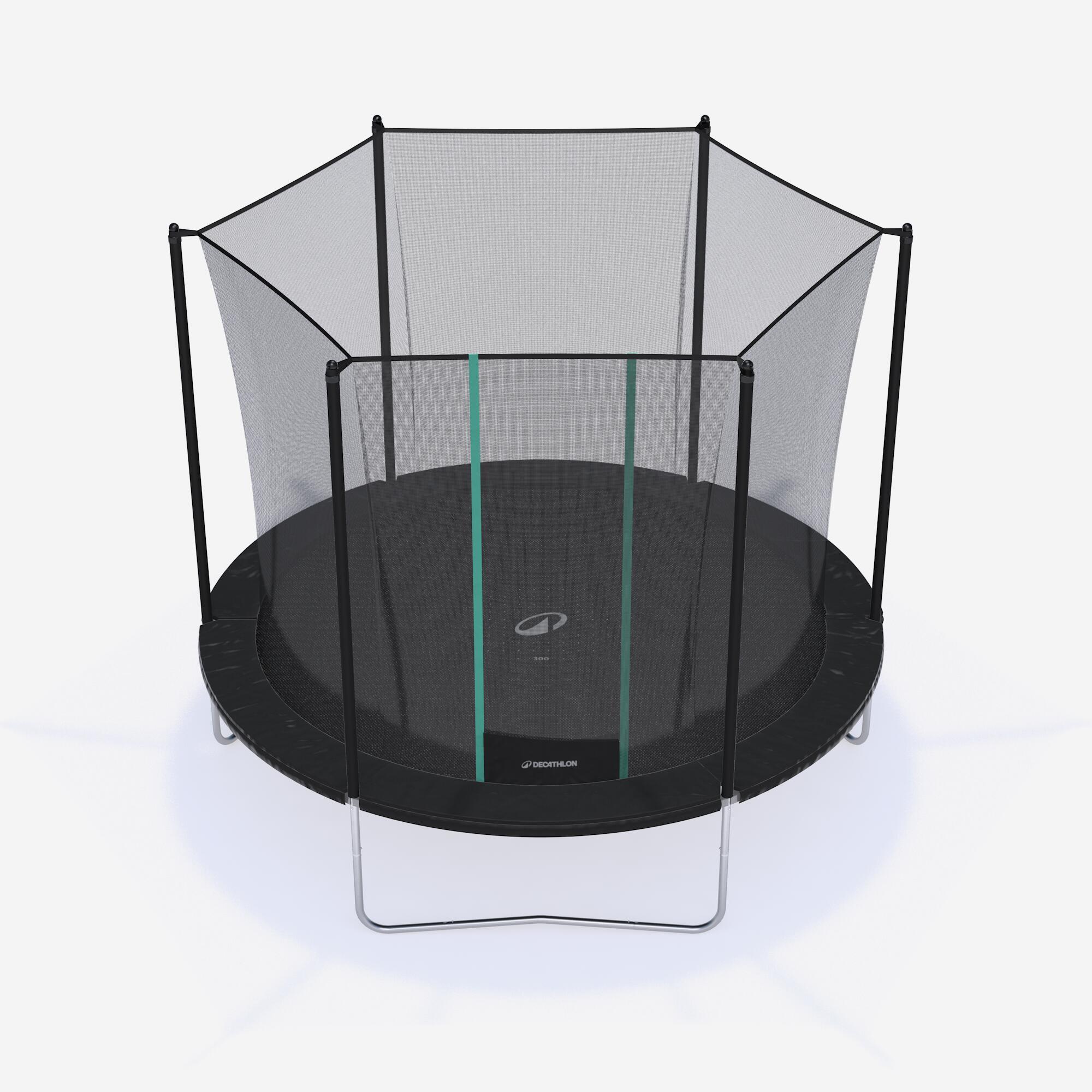 Durchmesser von 3 m für eine sichere Sprungfläche von 5,2 m²|Weder Schrauben noch Werkzeug! Einfach zu montieren und winterfest zu machen. |Einklappbare Pfosten zum Anbringen der Plane und für weniger Windwiderstand|Dynamisches Sprungverhalten und hoher Komfort durch die 66 Sprungfedern|Da haben Kinder noch viel Spielraum! Zertifiziertes Benutzergewicht von 100 kg. |Stabil durch die drei Stahlfüße. Zertifiziert nach Norm EN 71-14. |Der Hund hat den Schaumstoff zerfetzt? Alle Teile beim Kundenservice verfügbar!|Hält Beanspruchungen durch Kinder stand, aber auch UV-Strahlen und Regen.