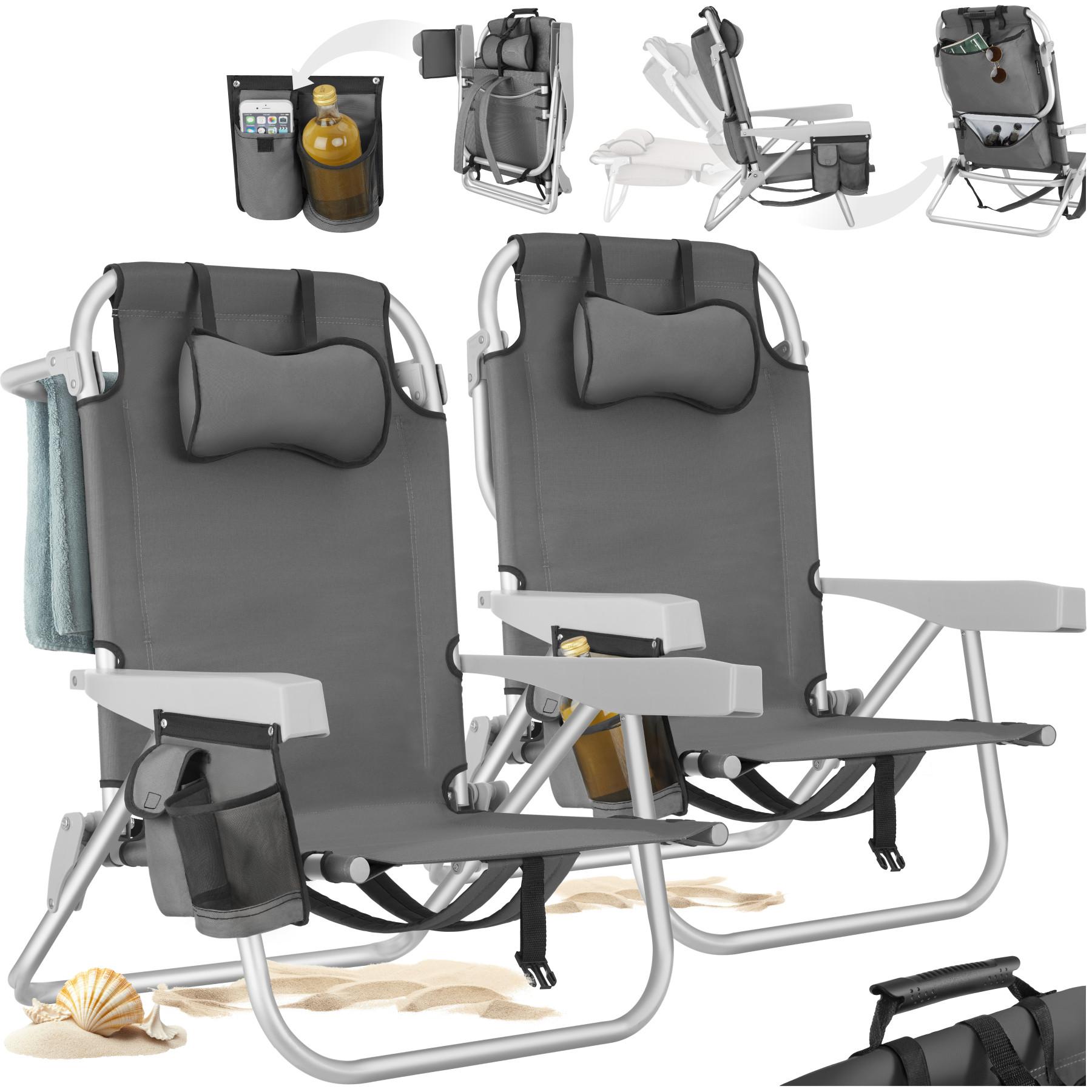 Tectake, Strandstuhl aus Aluminium mit Rucksackfunktion und klappbarer, verstellbarer Rückenlehne, 2 Stück