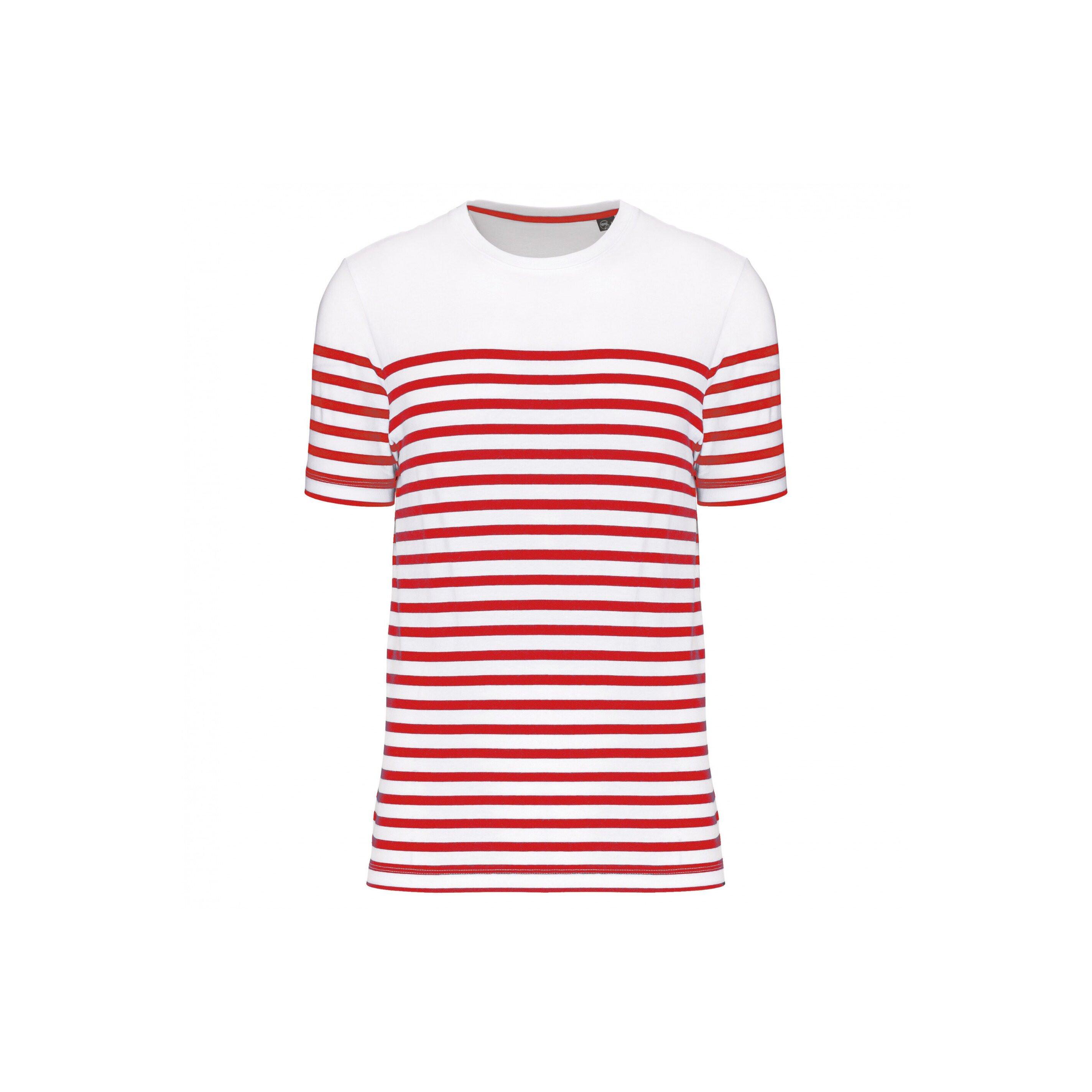 Dieses T-Shirt im Marinestil verfügt über ein klassisches Streifenmuster und ist eine zeitlose und vielseitige Ergänzung für jede Garderobe. Das Design umfasst einen bequemen Kragen und kurze Ärmel, wodurch es für verschiedene legere Anlässe geeignet ist.