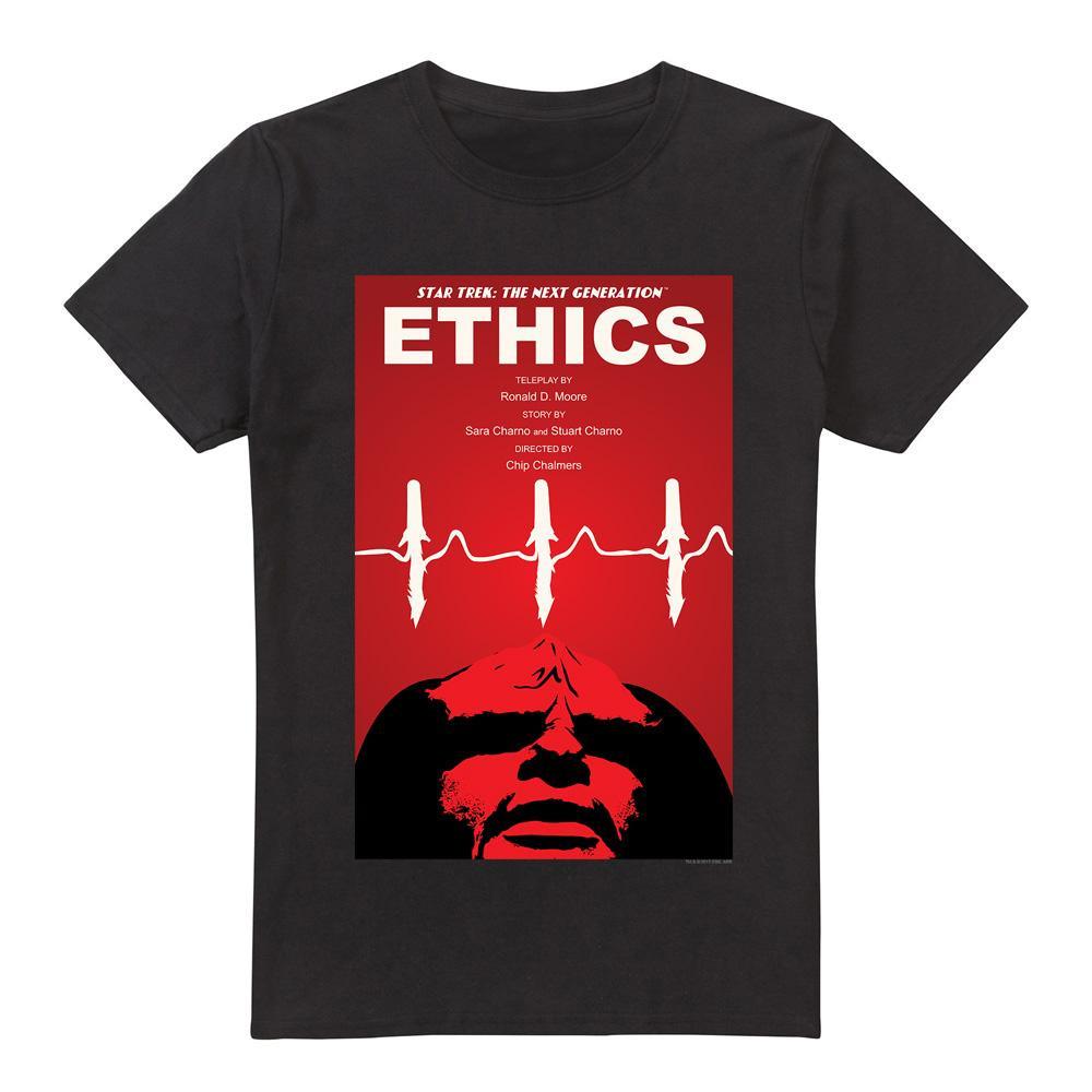 Dieses T-Shirt zeigt einen Grafikdruck, der von "Star Trek: The Next Generation" Staffel 5 Episode 16 mit dem Titel "Ethics" inspiriert ist. Das Design fängt die Essenz der Episode mit einer markanten Optik ein.