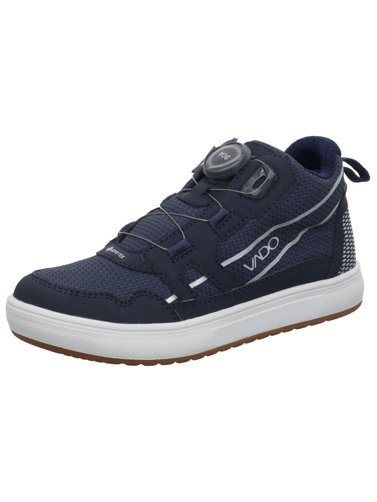 Die Schuhe sind aus einem komfortablen und gleichzeitig robusten Mesh-Material gefertigt, das jede Situation meistert. Die Spitze, sowie stark beanspruchte Bereiche sind mit einem strapazierfähigen PU-Material verstärkt.Das einfach zu bedienende BOA Fit-System sorgt für perfekte Passform und dein Kind stolpert niemals über offene Schnürsenkel. Reflektoren an der Ferse und den Seiten sorgen für bessere Sichtbarkeit in der Dämmerung und damit für mehr Sicherheit.Die GORE-TEX Membran macht den Schuh wasserdicht, atmungsaktiv und sorgt dafür, dass die Füße immer trocken bleiben.Der Schuh hat eine Laufsohle aus Gummi. Die sorgt für besseren Halt und die VADO X Flex-Zone im vorderen Bereich der Sohle unterstützt nachweislich eine gesunde Entwicklung der Ganglinie.Alle VADO Schuhe sind mit einem herausnehmbaren Fußbett ausgestattet, das bei 30°C; in die Waschmaschine kann und mit der VADO-typischen Zwischensohle. Diese kann man ebenfalls herausnehmen, wenn Platz für orthopädische Einlagen