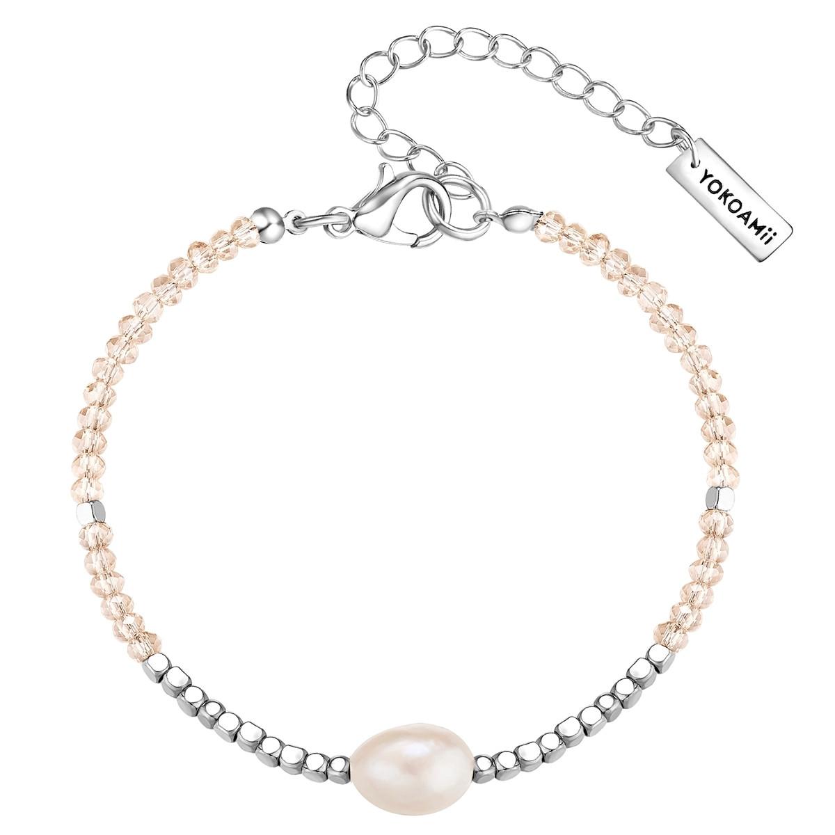 Du verbindest Perlen mit langweiligen Designs? Dann überzeuge dich vom Gegenteil: Hingucker dieses Modeschmuck-Armbands des jungen Trendlabels YOKOAMii ist der raffinierte Mix aus kubusförmigen, versilberten Metallperlen und glitzernden Glasperlen. Eine große Süßwasser-Zuchtperle setzt feminine Akzente und begeistert mit ihrer unregelmäßigen, barocken Perlenform - ideal für Fashionistas, die Schmuck mit Charakter mögen. Ein Verlängerungskettchen mit Karabinerverschluss sorgt für die optimale Anpassung an dein Handgelenk und ermöglicht schnelles An- und Ablegen. Ein moderner und erschwinglicher Materialmix mit einem außergewöhnlichen Look!