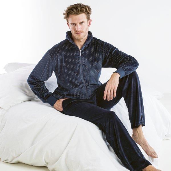 Gemütlichkeit zum Anziehen! Dieses bequeme Homedress für Herren in Nicki Velour Qualitätt lädt zum Relaxen ein. Das legere Oberteil mit praktischem Reisverschluss ist mit seiner lockeren Passform besonders bequem. Die lange Hose welche Seitentaschen und Bindebändel vorweist punktet auch mit Bewegungsfreiheit. Das modische Homedress eignet sich perfekt als entspannter Begleiter für den ganzen Tag. In Portugal genäht mit 40% Solarstrom.