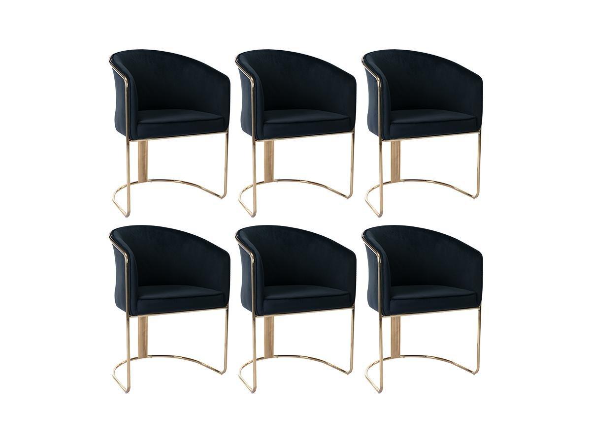 PASCAL MORABITO Stuhl mit Armlehnen 6er-Set - Samt & Metall - Schwarz und Goldfarben - JOSETHE von Pascal MORABITO