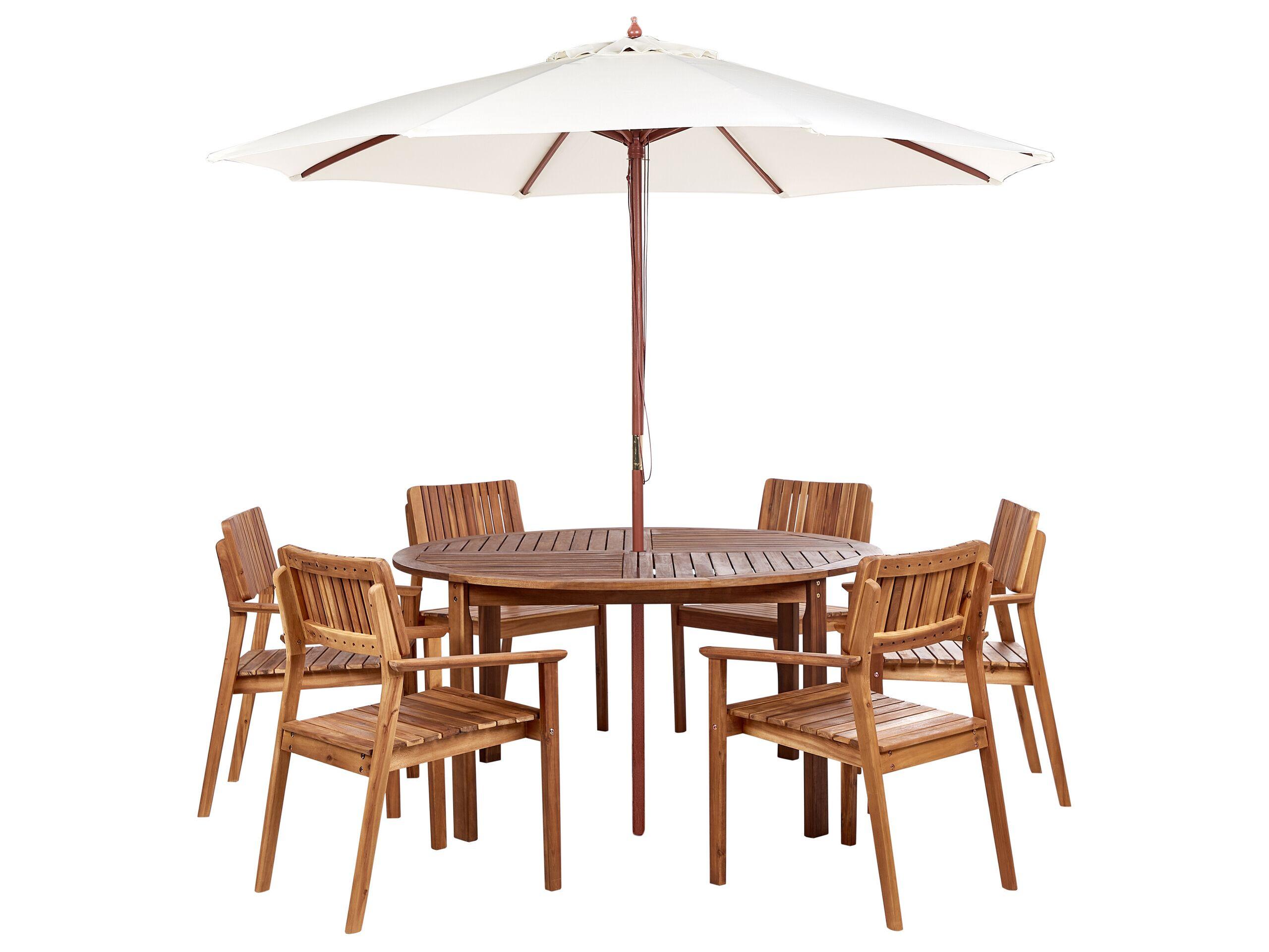 Beliani Gartentisch Set mit Schirm aus Akazienholz Rustikal AGELLO