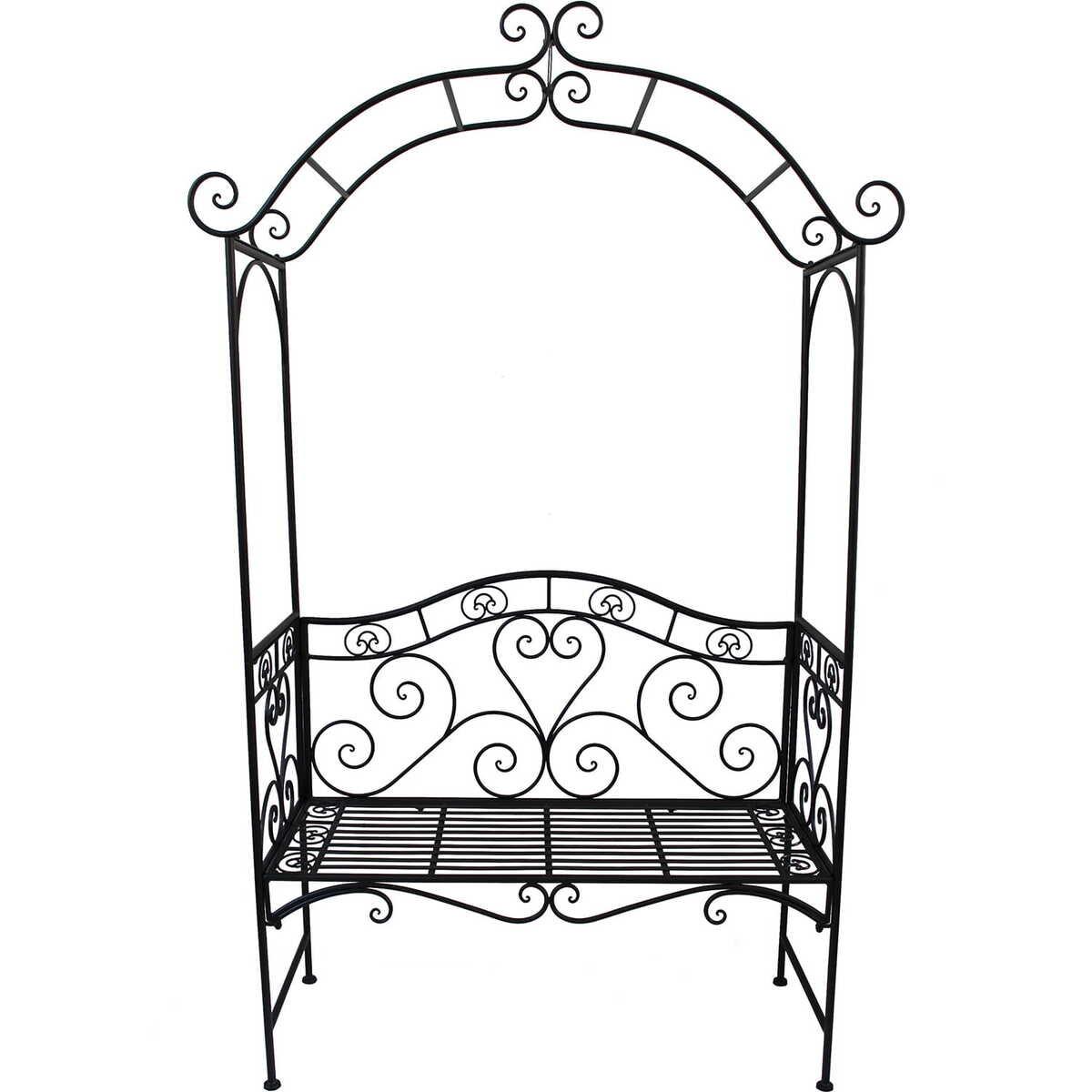 Hergestellt aus robustem Metall Zeitloses Design in Schwarz Bequeme Sitzfläche und romantischer Rosenbogen Belastbarkeit bis zu 150 kg Perfekt für gemütliche Stunden im Freien Schafft eine zauberhafte Atmosphäre Ein Blickfang in jedem Garten oder auf der Terrasse Fördert die Gestaltung Ihrer persönlichen Outdoor-Oase