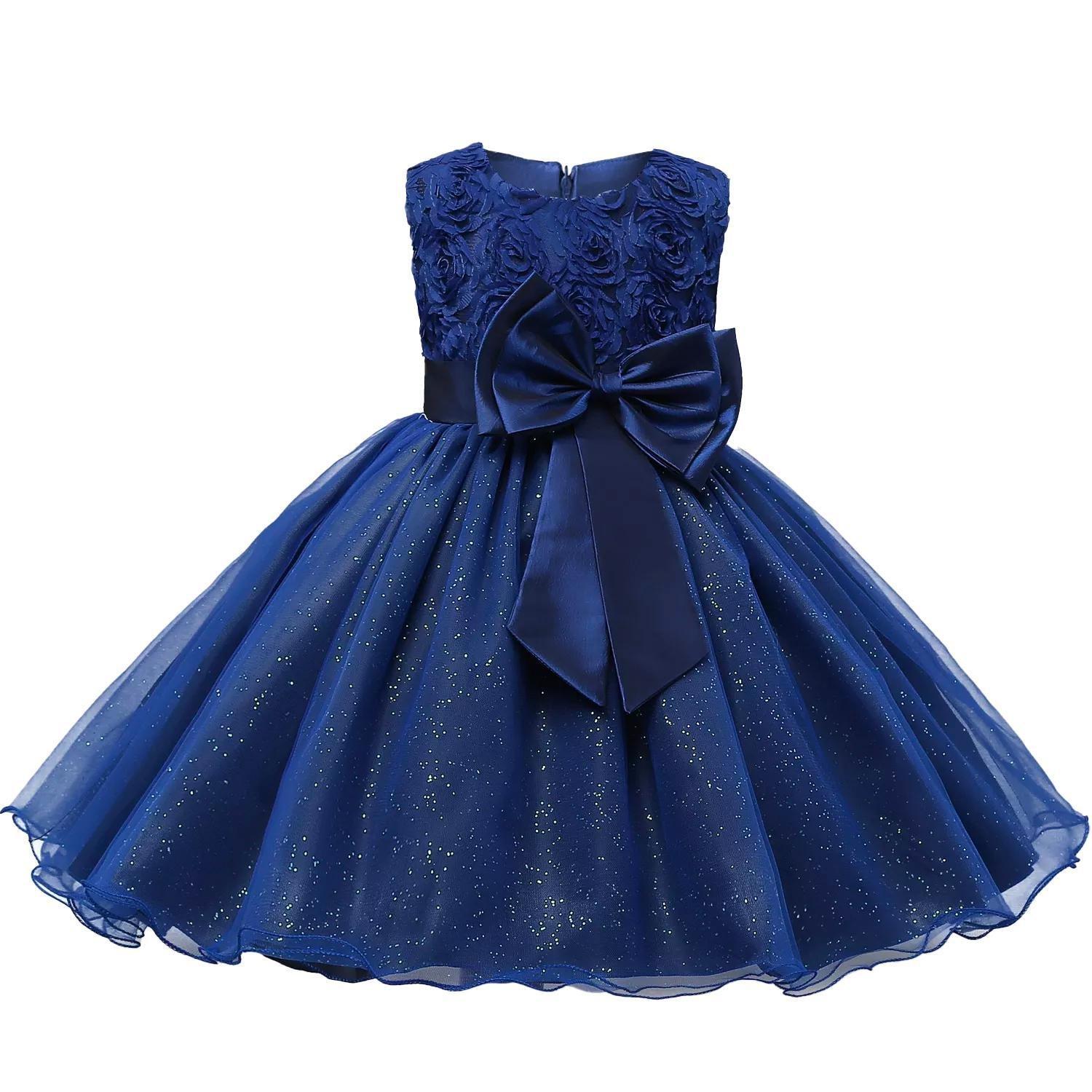Schönes Kleid für Kinder bis 12 Jahre (160 cm) mit großer Schleife und Blumenmuster. Das Kleid ist ärmellos und reicht bis zum Knie und sollte mit der Hand gewaschen werden. Schönes Kleid, das sich hervorragend für formelle Anlässe wie Hochzeiten oder für die Geburtstagsfeier eignet.