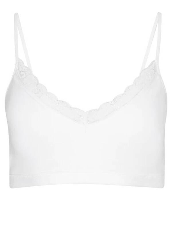 Das Parisienne Padded Bralette bietet Komfort und eine zarte Ästhetik. Es verfügt über ein weiches, gepolstertes Design für sanften Halt und eine glatte Silhouette. Das Bralette ist mit einer dezenten Spitzenborte entlang des Ausschnitts verziert, die diesem Alltagsessential einen Hauch von Eleganz verleiht.