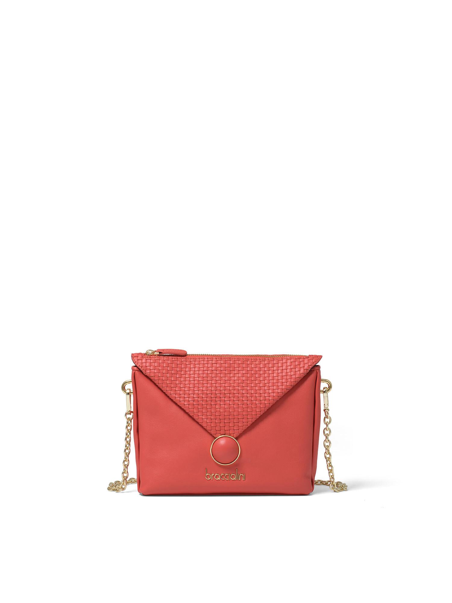Diese Umhängetasche besticht durch ein raffiniertes Design mit einem gewebten Strukturdetail an der Klappe, das einen Hauch von Eleganz verleiht. Die Tasche ist mit einem Magnetknopfverschluss ausgestattet, um persönliche Gegenstände sicher aufzubewahren. Ein markanter goldfarbener Ring und das Markenlogo sind auf der Vorderseite angebracht, was ihren stilvollen Reiz verstärkt. Der verstellbare Schultergurt ermöglicht ein bequemes Tragen.