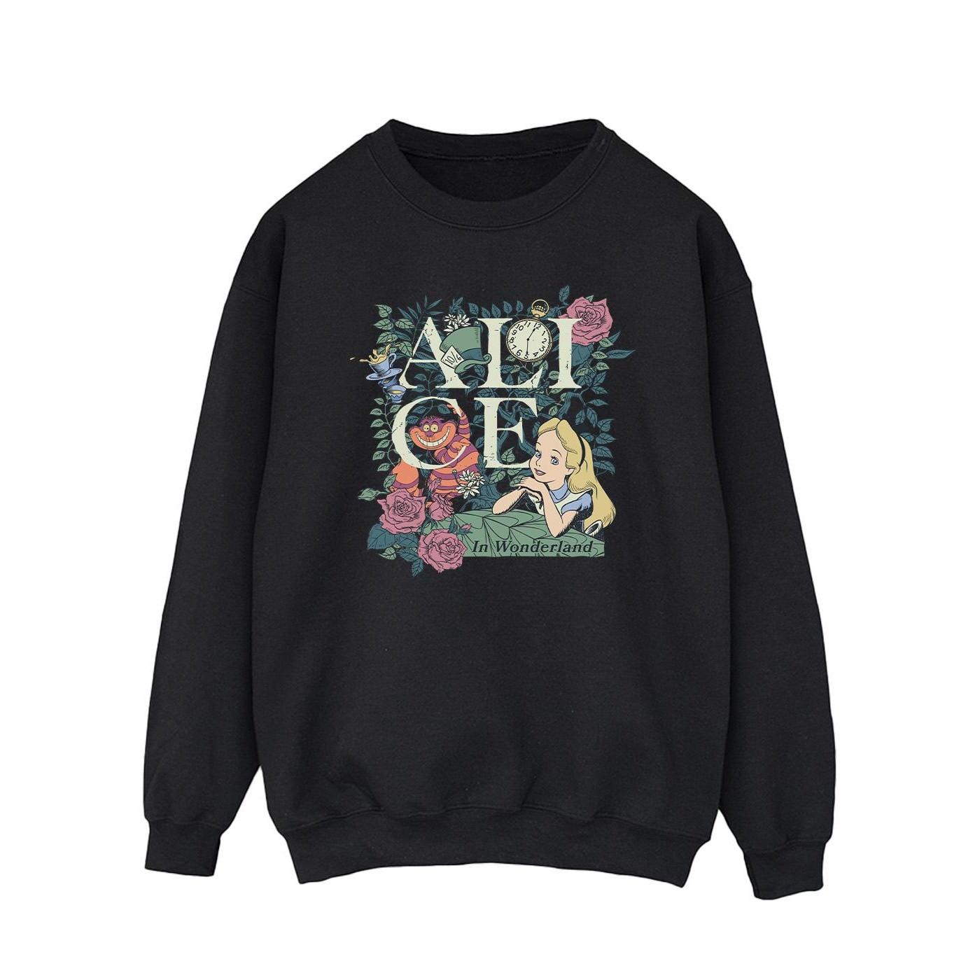 Dieses Sweatshirt zeigt eine fesselnde Grafik, die von Alice im Wunderland inspiriert ist und beliebte Charaktere sowie ikonische Elemente aus der klassischen Geschichte präsentiert. Das Design ist auf der Vorderseite zentriert und bildet so einen Blickfang des Kleidungsstücks.