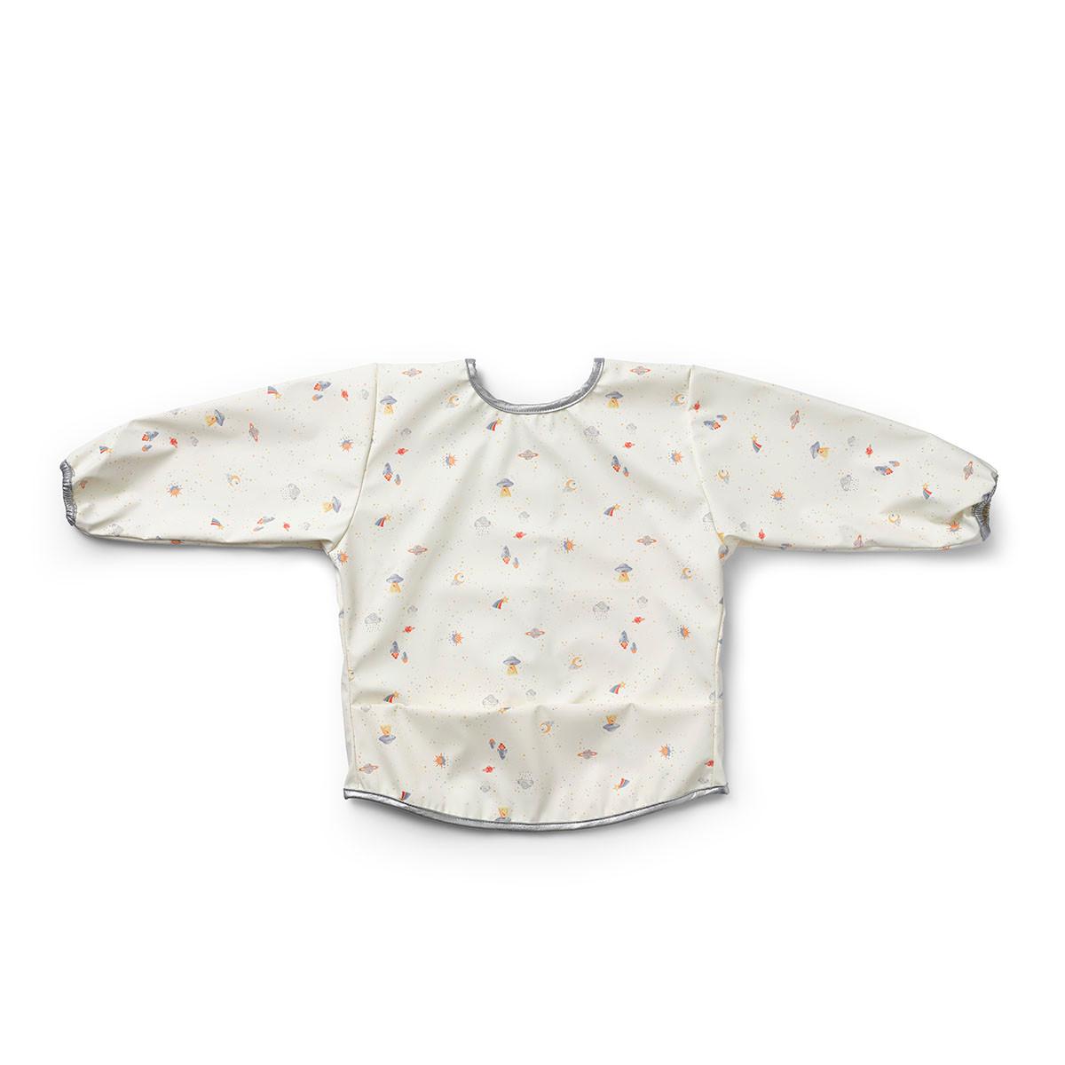 Ein sehr praktisches Lätzchen für alle, die nicht gern Bekleidung waschen. Die langen Arme bieten umfassenden Schutz sowohl am Esstisch als auch beim kreativen Spiel und Spiel. Nach dem Gebrauch nur abspülen- oder wichen und zum Trocknen aufhängen , das Öko-tex-zertifizierte Material nimmt kaum Feuchtigkeit auf. Mit einem weichen Klettverschluss leicht und bequem am Hals zu befestigen. Passend bis 3 Jahre