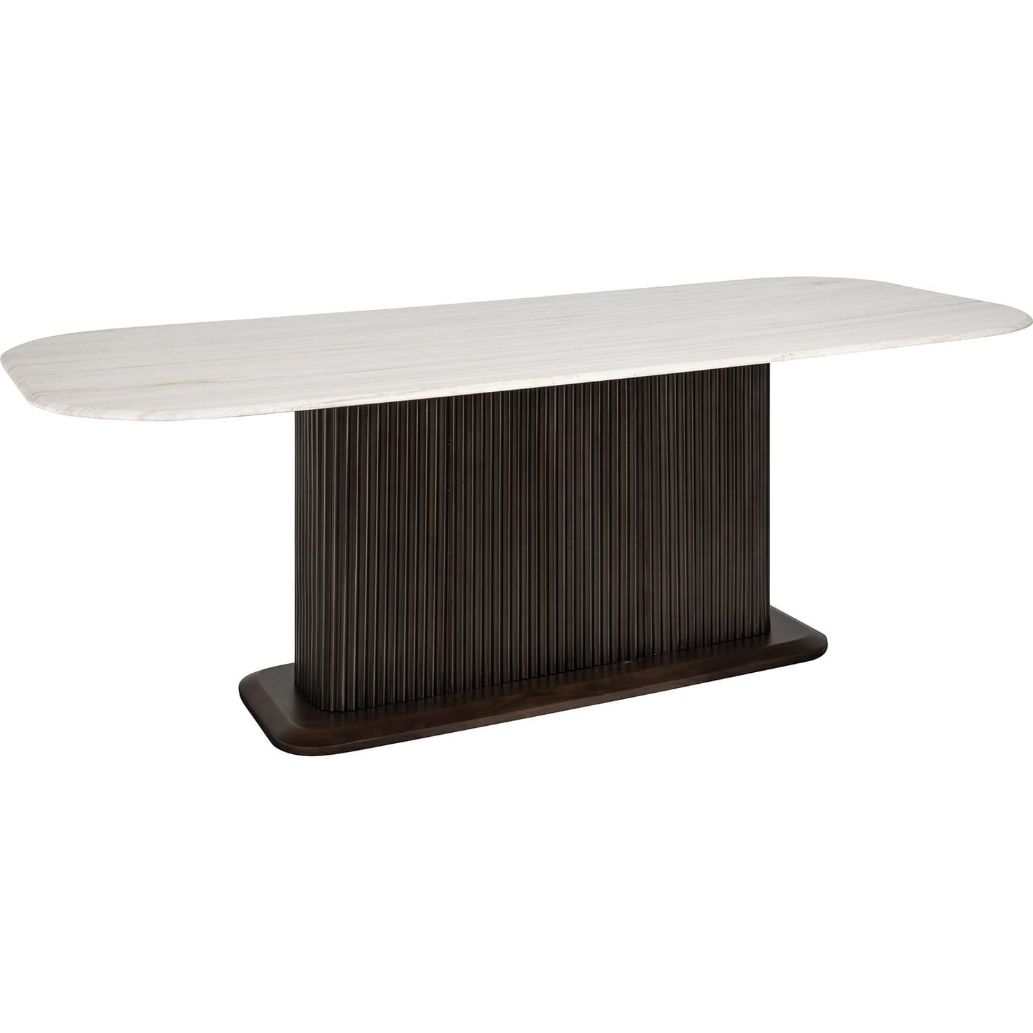 Der Esstisch Mayfield 230 ist die Verkörperung von Eleganz und Robustheit. Die Tischplatte, gefertigt aus hochwertigem Marmor, ist nicht nur langlebig, sondern auch zeitlos schick, was ihn zu einem auffälligen Blickfang in jedem Esszimmer macht. Die einzigartige Maserung und die glänzende Oberfläche des Marmors verleihen dem Tisch eine luxuriöse Ausstrahlung. Unter der Marmorplatte befindet sich ein Fuss aus Holz und Metall, der für einen schönen Kontrast und zusätzliche Stabilität sorgt.