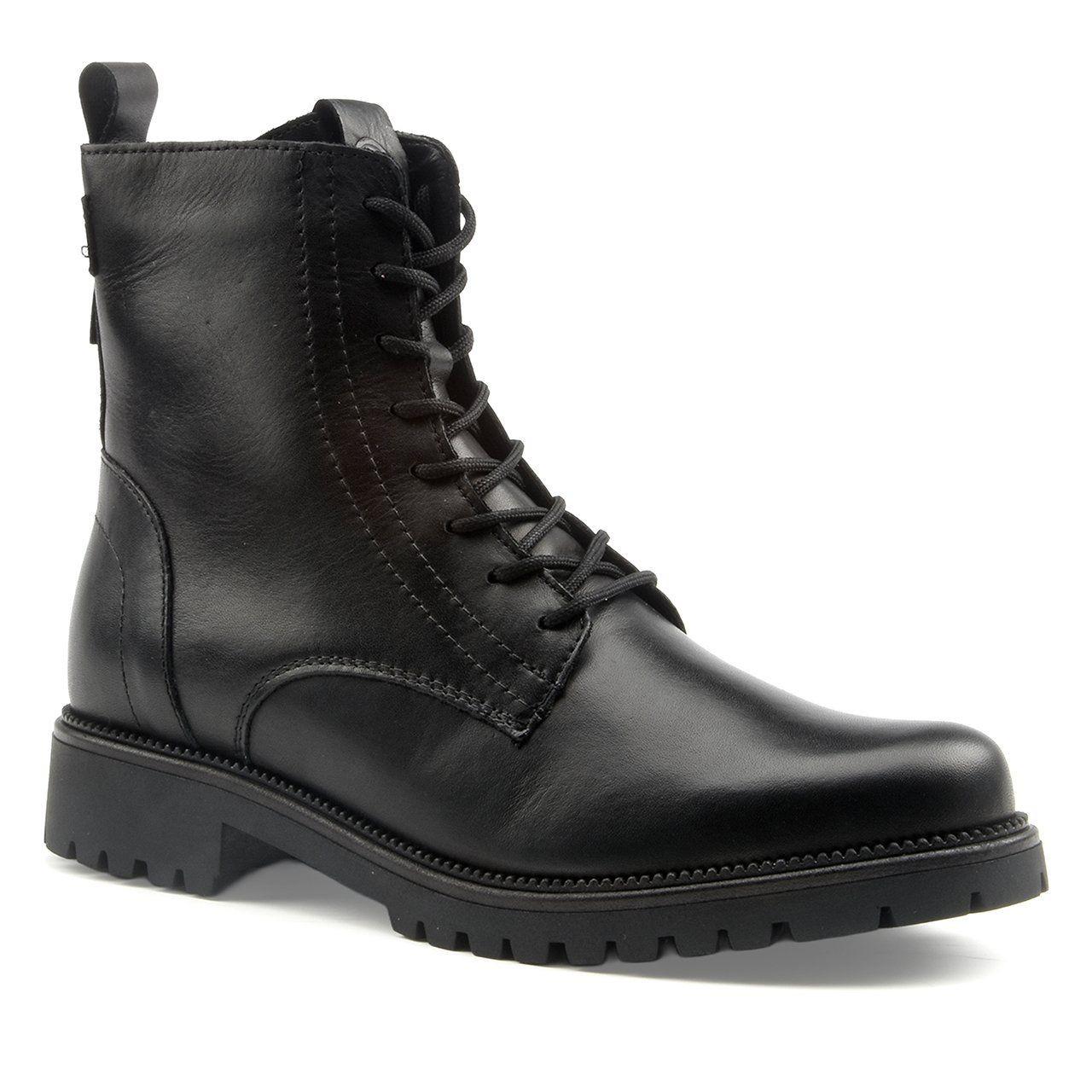 Entdecken Sie die Tamaris Soul Stiefeletten für freigeistige Abenteurer. Diese schwarzen Lederstiefel mit Schnürsenkel und Reißverschluss sind ideal für Motorradtouren oder Wandertage. Der 30mm Absatz bietet soliden Schutz, während das warme Textilfutter und die synthetische Außensohle für optimalen Komfort sorgen. Die sichtbaren Nähte Details verleihen diesen robusten Stiefeletten einen Hauch von Eleganz. Die Tamaris Soul Stiefel sind perfekt für kalte Tage und Outdoor Ausflüge.