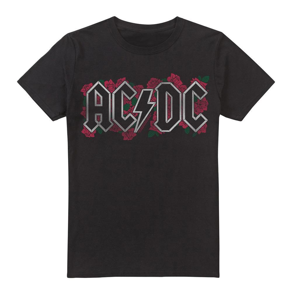 Dieses klassische schwarze T-Shirt zeigt das ikonische ACDC-Logo mit einem einzigartigen Rosenmuster-Hintergrund und ist eine stilvolle Hommage an die legendäre Rockband. Das Design bietet einen unverwechselbaren Look für Fans.