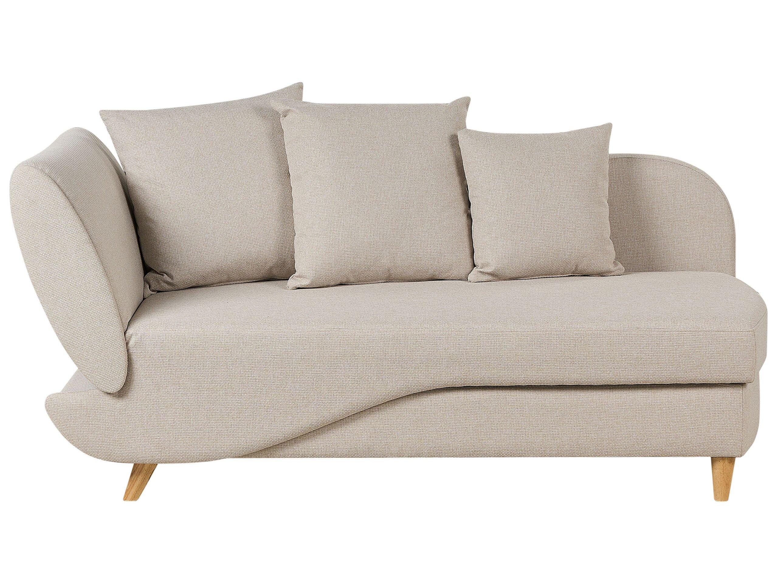 Gemütliche Chaiselongue mit Bettkasten und mehreren Kissen. Dieses Möbelstück kann sowohl als Chaiseloungue, als auch als kleines 2-Sitzer Ecksofa oder Schlafgelegenheit genutzt werden und bietet dank des praktischen Bettkastens genug Stauraum für Kissen, Bettwäsche und anderes Zubehör. Die Récamiere besteht aus hochwertigen und langlebigen Materialien. Ihr Bezug besteht aus einem weichen, atmungsaktiven Stoff, der mit seiner Optik und Haptik an Leinen erinnert. Das verstellbare Kopfteil sorgt für Komfort und Halt. Die leicht geschwungene Rückenlehne, die trendige Farbe, die hellen Holzbeine sowie die drei bequemen Dekokissen machen das Sofa zum modernen Alleskönner.