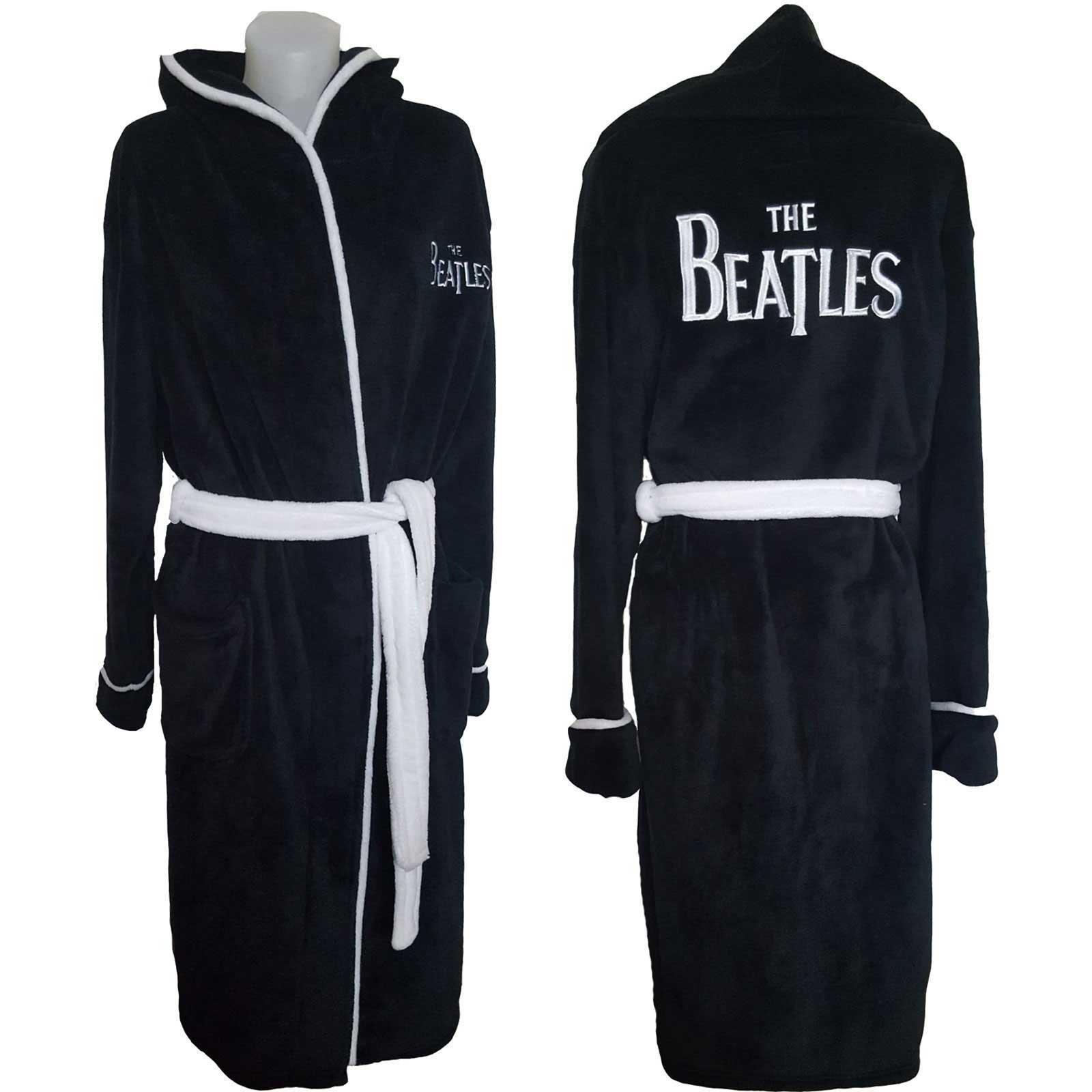 Dieser gemütliche Bademantel präsentiert sich in einem klassischen Design mit Kapuze und Bindegürtel für eine bequeme Passform. Er ist mit dem "The Beatles"-Logo verziert und somit eine perfekte Wahl für Fans.