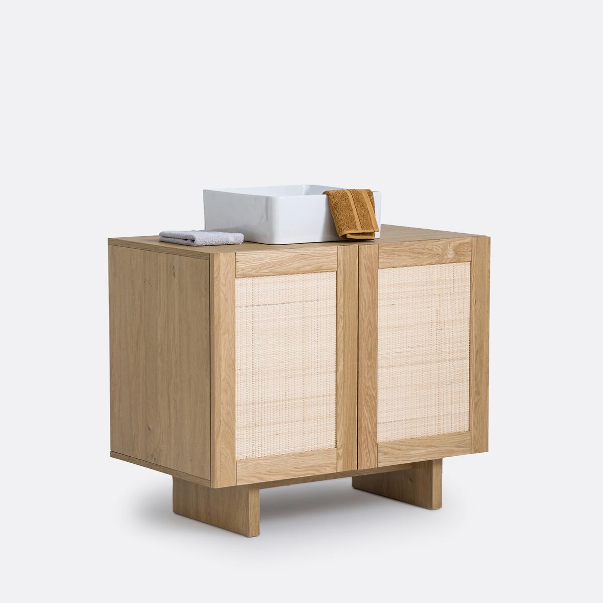 Skandinavischer Stil, puristische Linien: Die Serie Arty verbindet helles Holz und Rohrgeflecht. Die Möbel dieser Serie bringen eine warme, gemütliche Note ins Badezimmer. Design by La Redoute Intérieurs. Hergestellt in Europa.