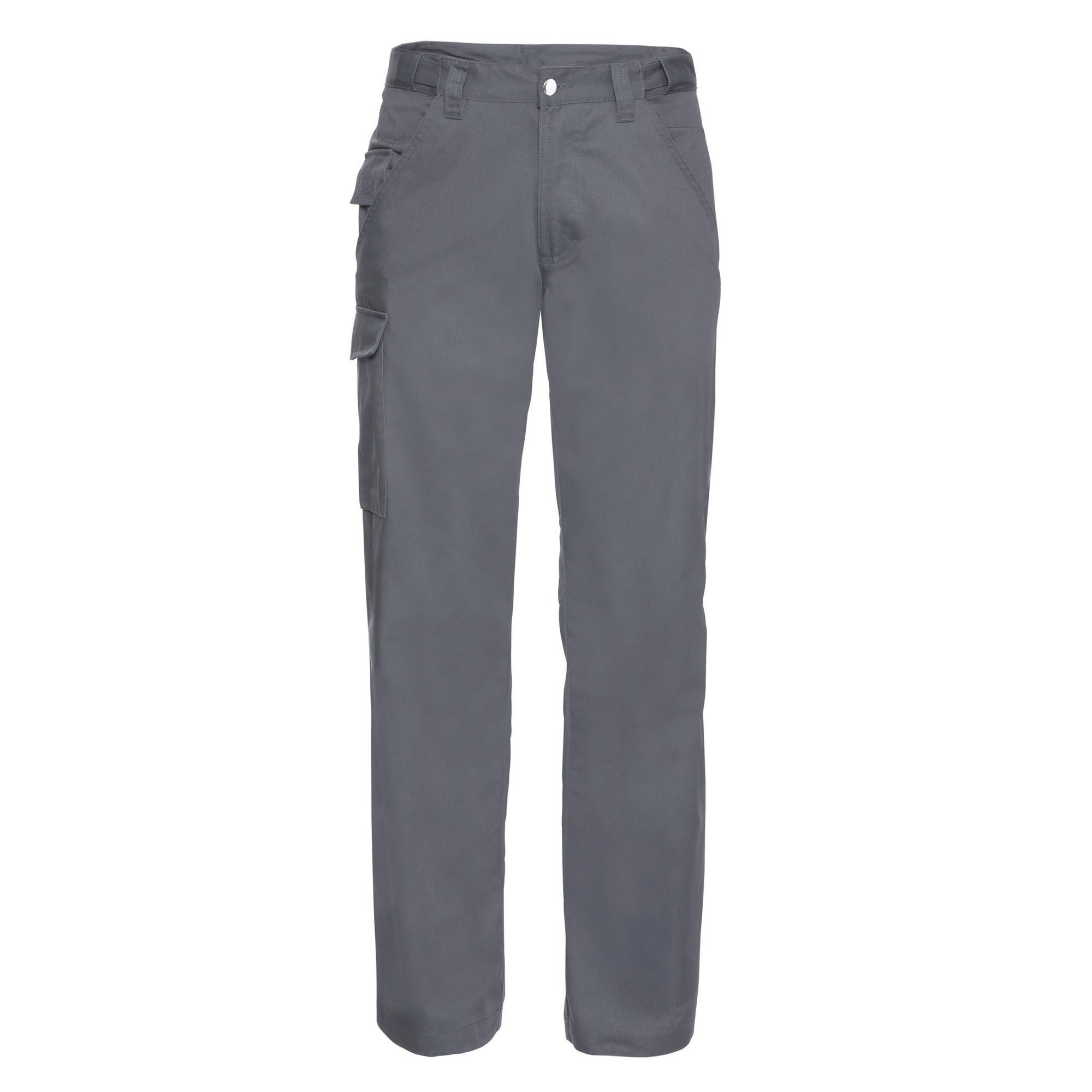 65% Polyester, 35% Baumwolltwill. Design: Unifarben. Druckknopf, Hosenschlitz mit Reißverschluss. Nachhaltigkeit: Amfori-Freigabe, Better Cotton Initiative, BSCI, Verein für faire Arbeit, Oeko-Tex Standard 100 zertifiziert, WRAP Zertifikat. Gürtelschlaufen. GSM (Gramm pro Quadratmeter): 245. Taille: Erweiterbar. Taschenart: Eine Cargotasche, 2 Taschen hinten, Klappenverschluss, Zwei Seitentaschen, Handy.