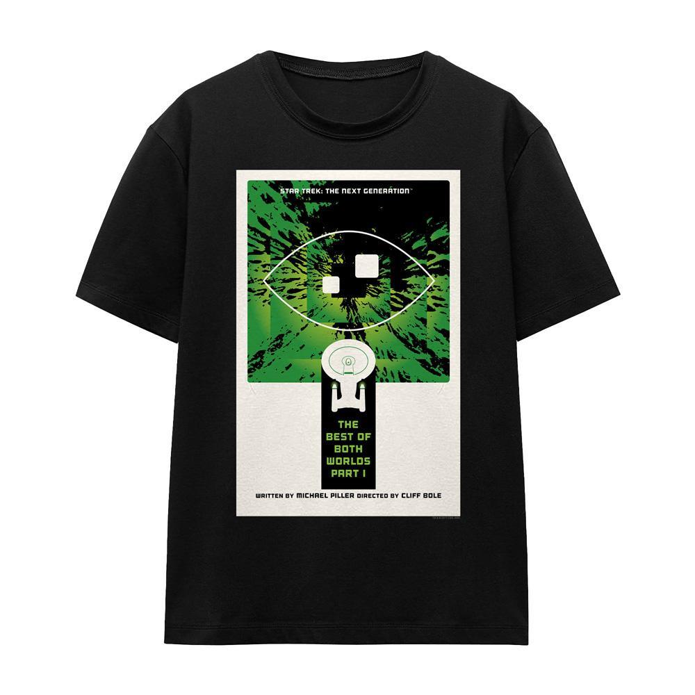 Dieses T-Shirt zeigt einen Grafikdruck, der von "Star Trek: The Next Generation" Staffel 3 Episode 26, "The Best of Both Worlds Part I" inspiriert ist. Das Design fängt die Essenz der ikonischen Episode ein und macht es zu einem unverwechselbaren Stück für Fans.