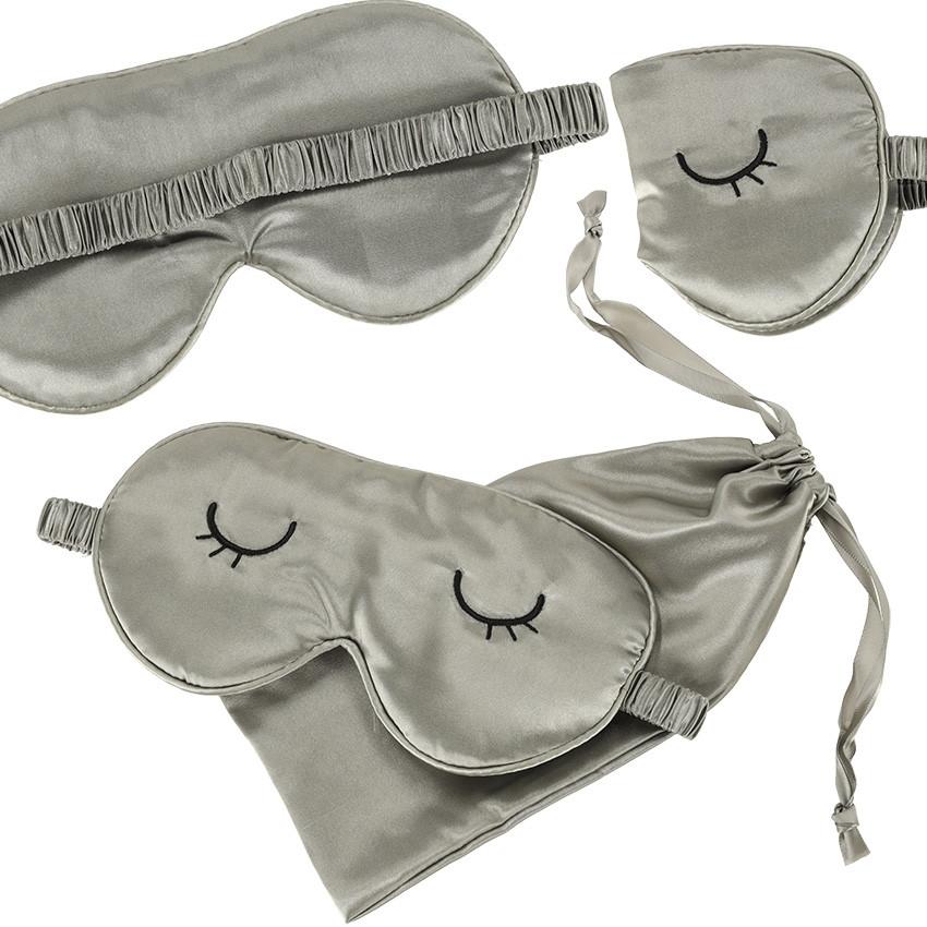 Graue Augenbinde zum Schlafen in einer praktischen Tasche. Blockiert externes Licht und schützt Ihre Augen vor Staub und Pollen. Perfekt für den Einsatz zu Hause und auf Reisen. Material: Polyester. Abmessungen: 21 cm x 11 cm.