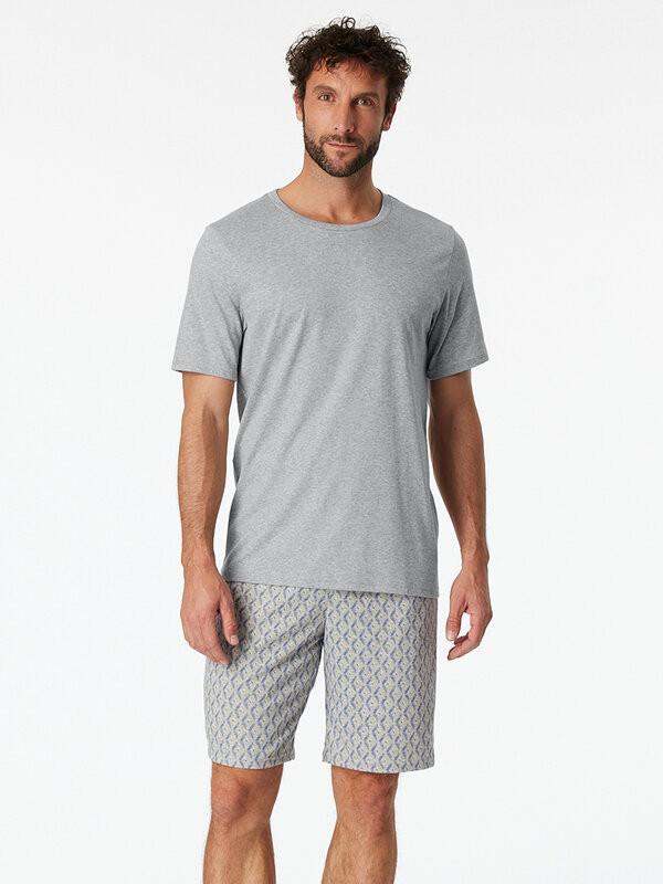 Dieser kurze Pyjama bietet Komfort und Stil für entspannte Stunden zu Hause. Das Set besteht aus einem kurzärmeligen Oberteil und gemusterten Shorts, die für eine bequeme Passform sorgen.