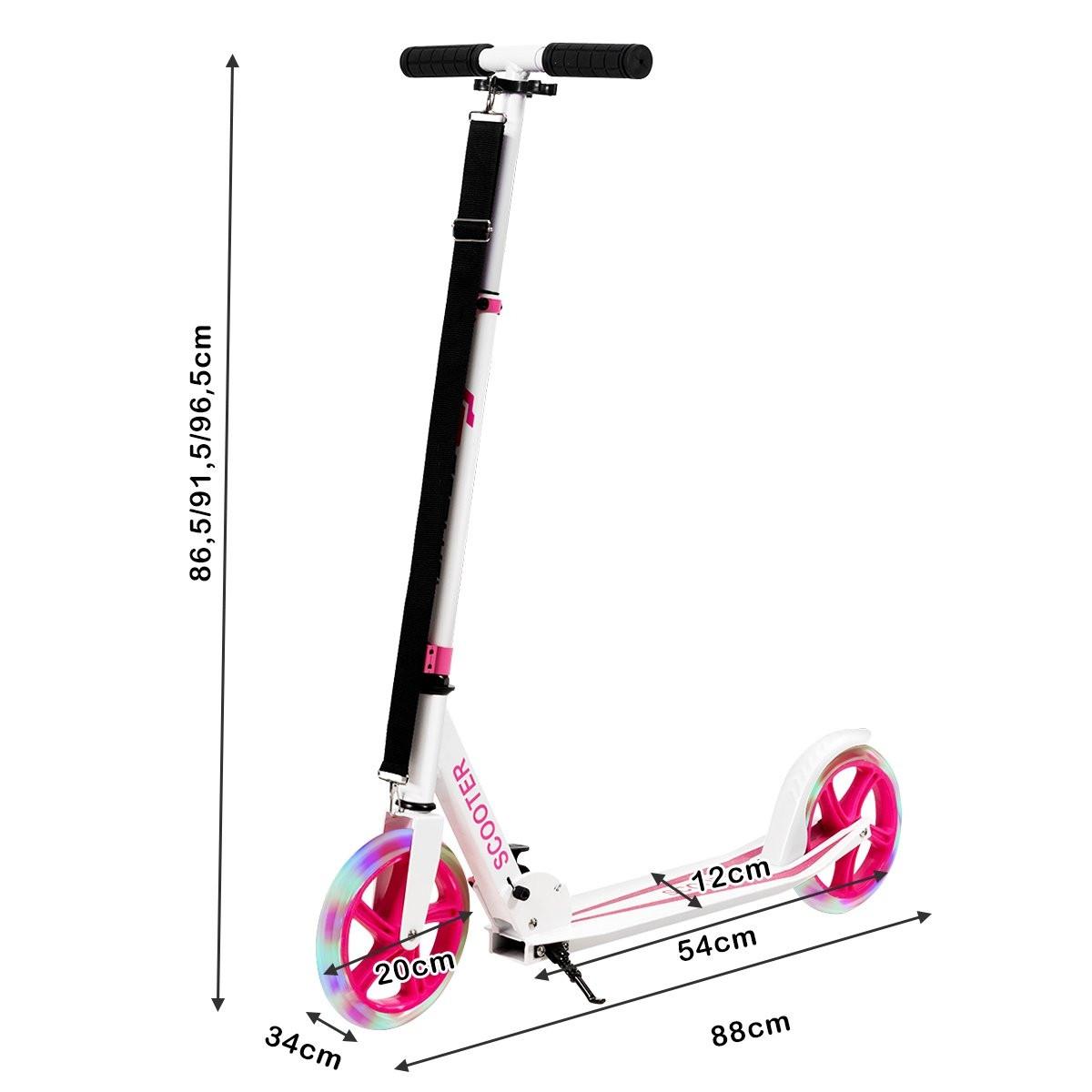 B2X Scooter Roller klappbar Tretroller höhenverstellbar 100kg Tragkraft Kickroller mit 2 LED Räder rosa