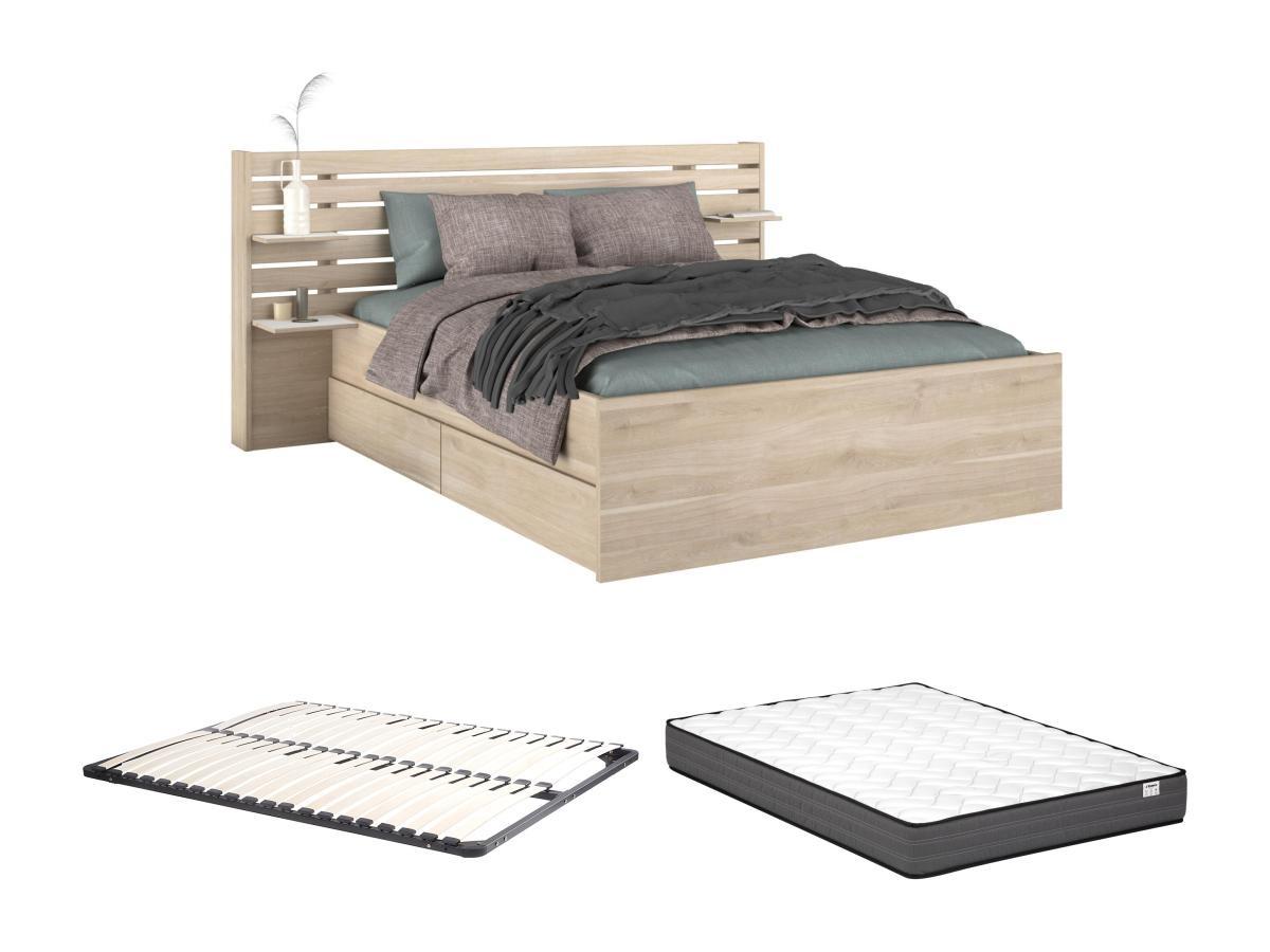 Vente-unique, Bett 140 x 190/200 cm mit Lattenrost + Matratze - Naturfarben - TENALIA II