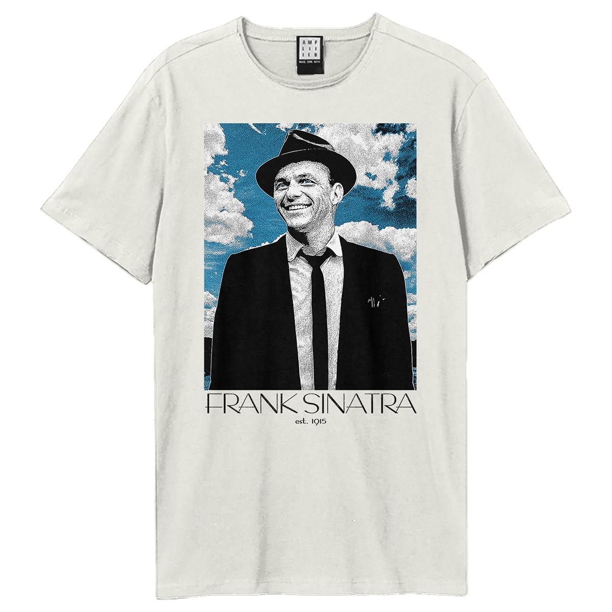 Dieses T-Shirt verfügt über einen klassischen Rundhalsausschnitt und kurze Ärmel und bietet eine bequeme und vielseitige Passform. Die Vorderseite ist mit einem Grafikdruck von Frank Sinatra vor einem blauen Himmel mit Wolken verziert, begleitet von seinem Namen und Geburtsjahr.