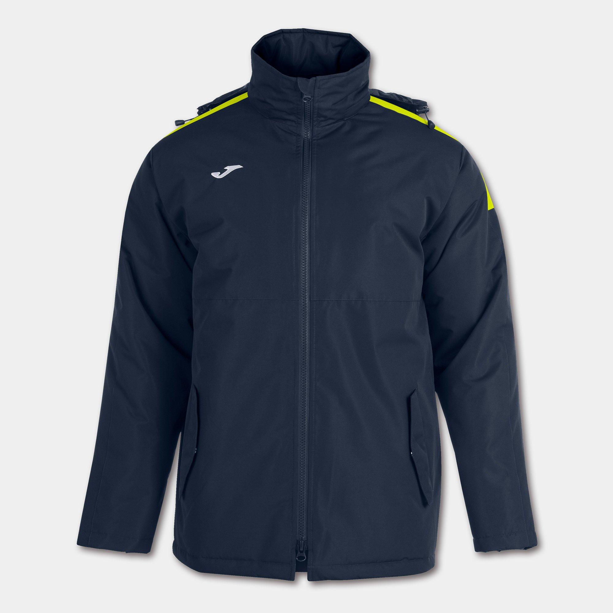 Die Joma Trivor Windjacke ist ein 3/4-langer Anorak, der Schutz vor den Elementen bietet. Sie ist mit einem Fleecefutter ausgestattet, um den Träger warm und isoliert zu halten. Die Jacke verfügt über eine Kapuze mit versteckten Kordeln, seitliche Taschen mit Knopfverschluss und eine zusätzliche Innentasche mit Klebeverschluss. Ein gesticktes Logo rundet das Design ab.