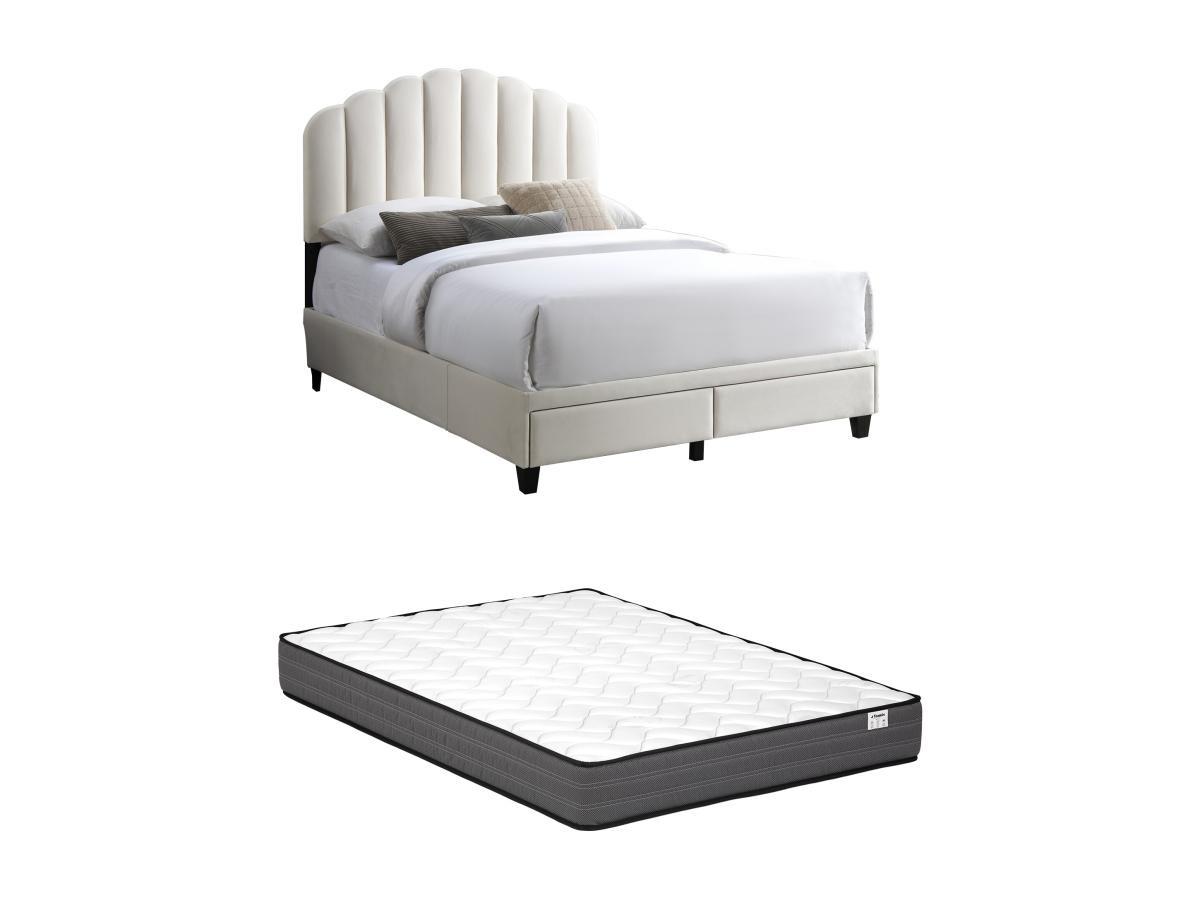 Vente-unique, Bett mit Schubladen + Matratze - 160 x 200 cm - Samt - Elfenbeinfarben - ILISIO