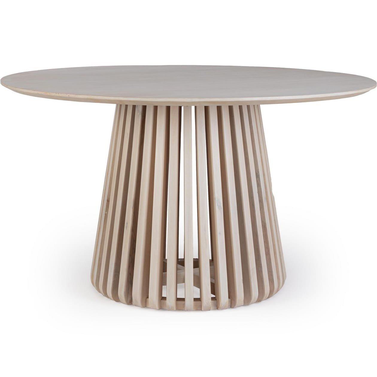 Tisch aus Mangoholz, Farbe Natur, Ø130 x 75hGestell aus MangoholzFeinbearbeitung aus NitrozelluloseBeine zu montieren